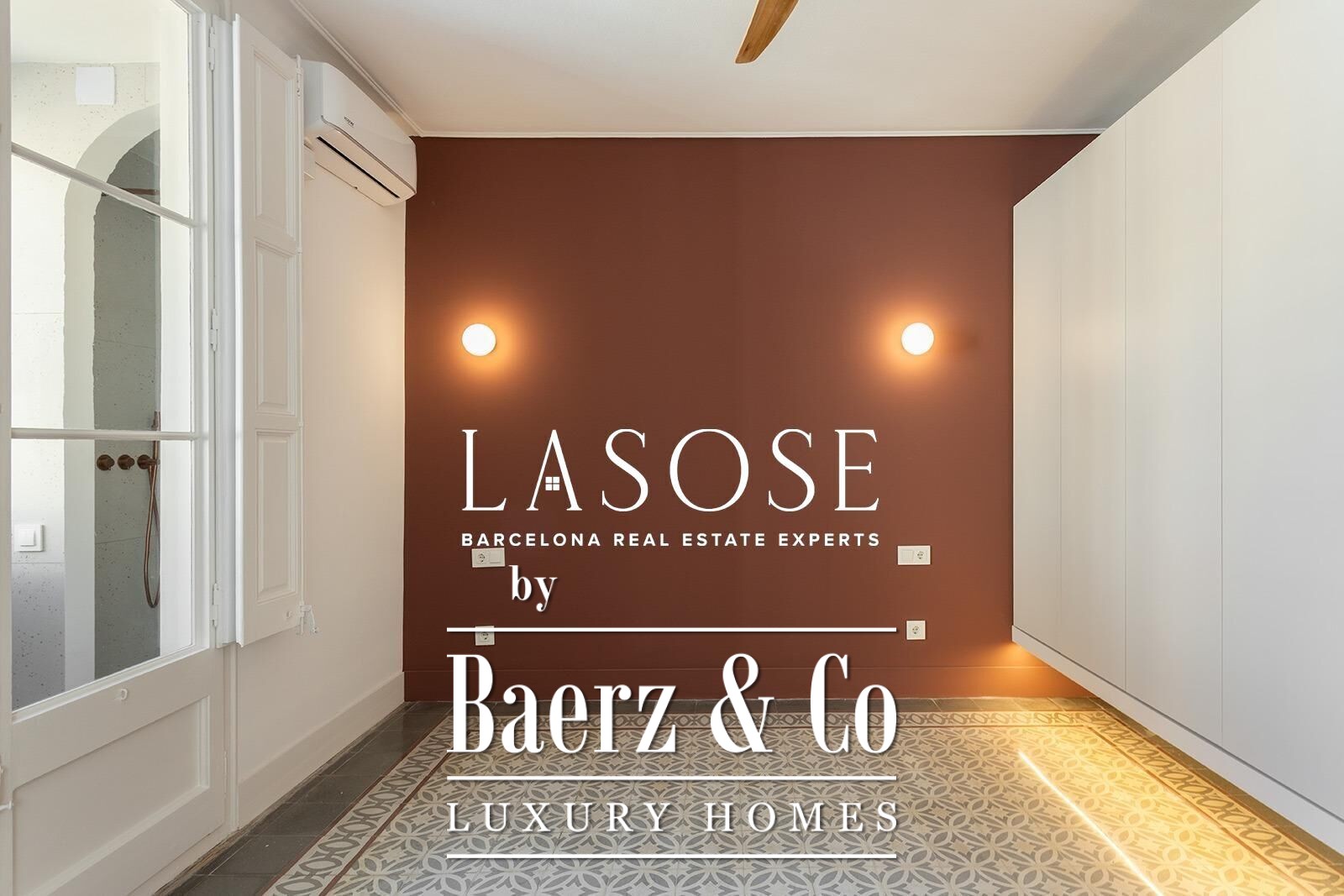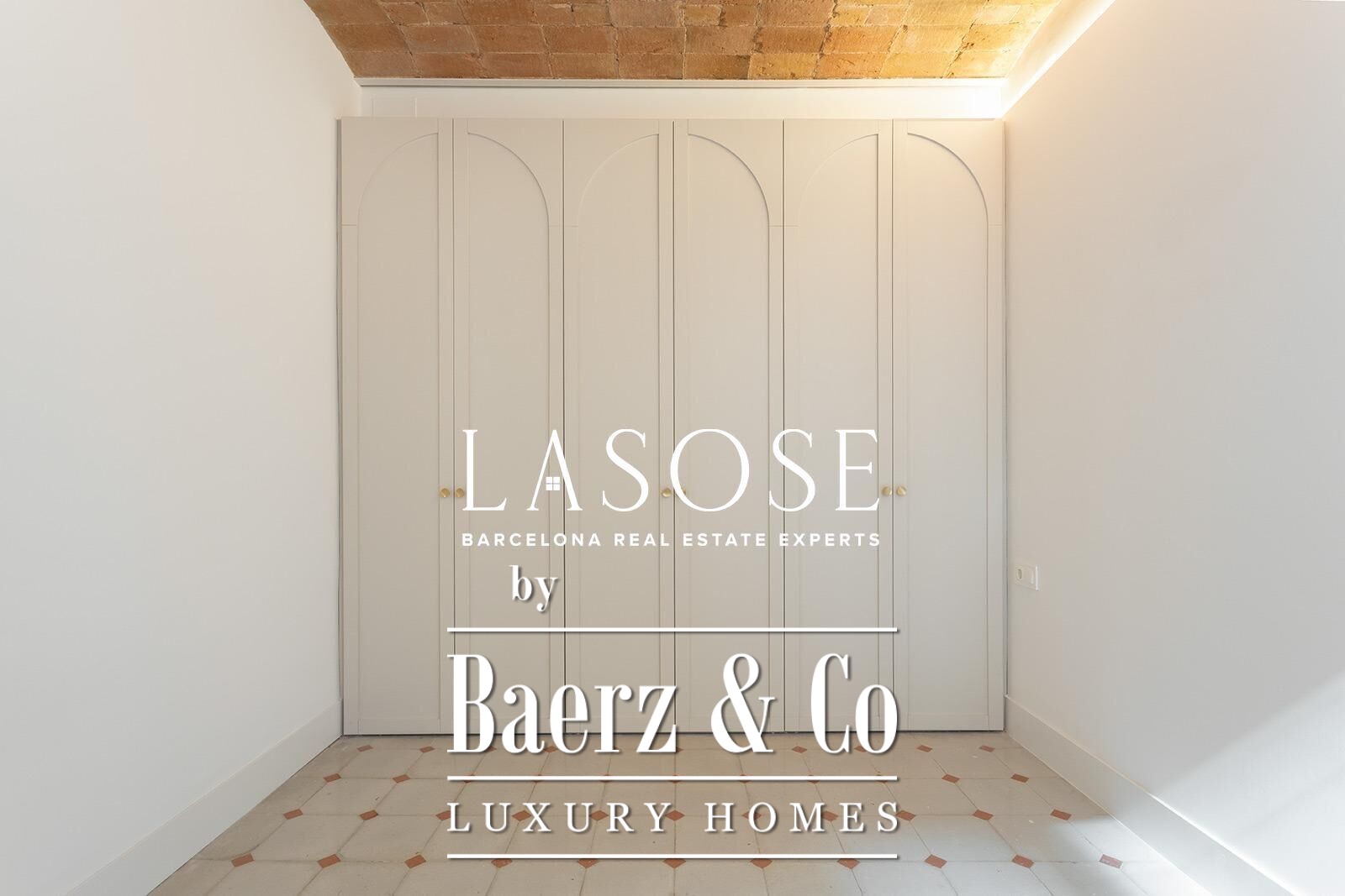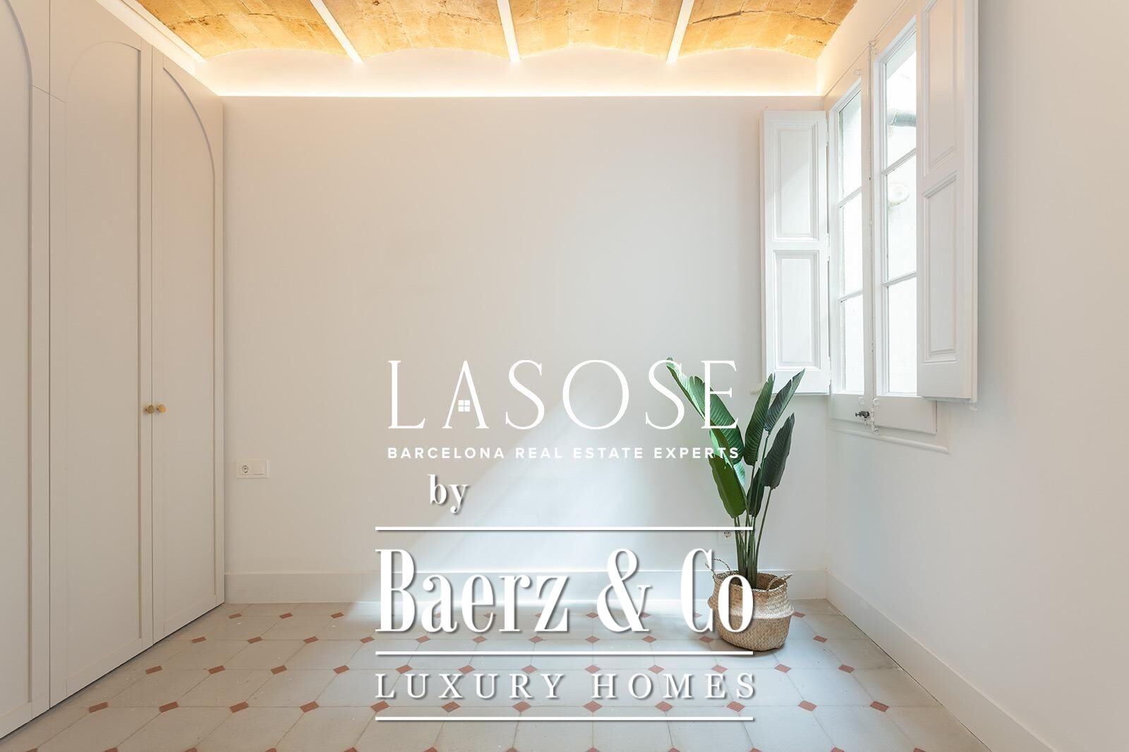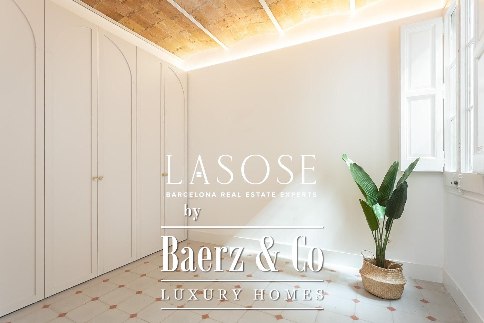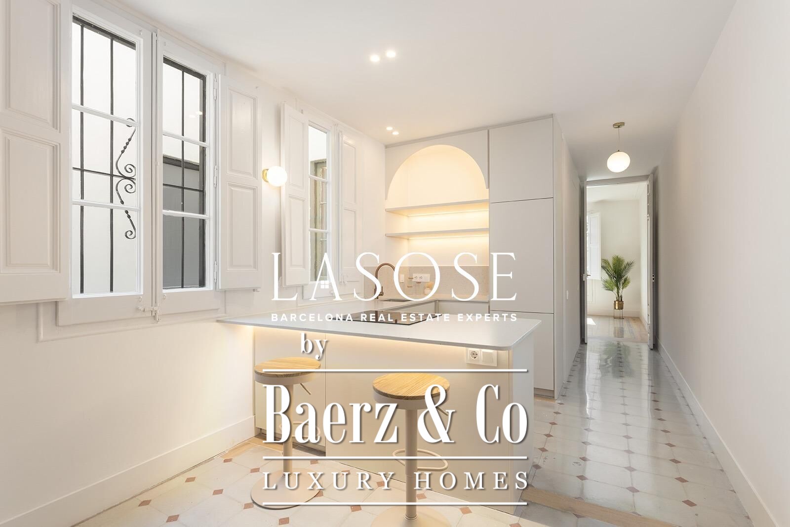 شقة برشلونة هي إقامة تجمع بين العمارة التراثية والتجديد العصري، وتقع في الطابق العلوي من منطقة إيشامبل. تبلغ مساحة الشقة 115 مترًا مربعًا، وقد تم تجديدها بالكامل في عام 2025، وتستقبل الكثير من الضوء الطبيعي من شرفتها المواجهة للجنوب الشرقي، مما يغمر المساحة الداخلية بالدفء ويتيح إطلالات مفتوحة من غرفة الجلوس. تحتفظ الشقة بأرضيات هيدروليكية أصلية وسقف كتالوني تم ترميمه بعناية وهما من بصمات الحرفية التقليدية، بينما تندمج أنظمة الإضاءة الحديثة، والحمامات الأنيقة، والأجهزة المنزلية الجديدة تمامًا بانسجام في نسيج السكن الراقي.