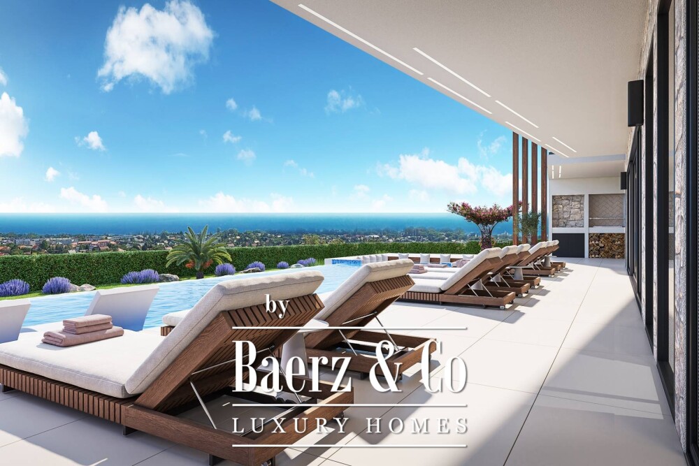في قلب الفيلا، تندمج منطقة المعيشة ذات التصميم المفتوح بشكل طبيعي مع غرفة الطعام والمطبخ وغرفة البلياردو. يؤدي درج مزدوج فريد إلى الطابق العلوي، حيث تنتشر مناطق الاسترخاء الإضافية وغرف النوم الأنيقة التي تغمرها الإضاءة الطبيعية، وتعززها فتحات في السقف ترسم إطلالة على السماء ليلًا ونهارًا. تشمل المرافق ساونا فنلندية مع دش، وجاكوزي، وأنظمة تدفئة وتبريد أرضية تعمل بمضخة حرارية. يدعم نظام الطاقة الشمسية نمط الحياة المستدامة، بينما تثبت المسبح اللامتناهي المدفأ، المحاط بالزجاج من الجانب الجانبي، مكانته في الحدائق المشذبة.