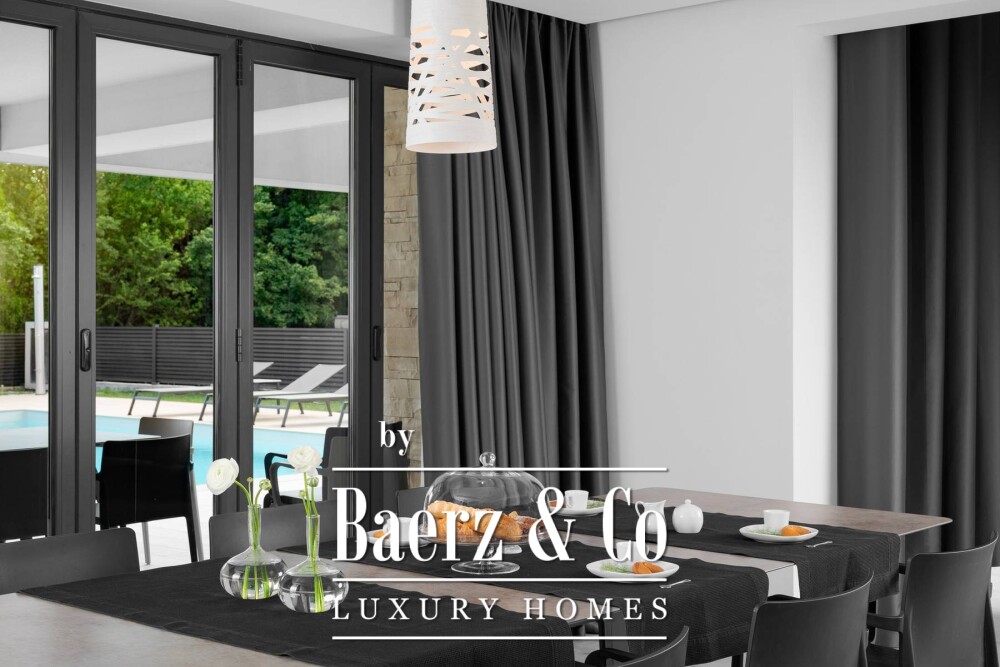 تقدم فيلا ليجنـيان دراسة في التصميم العصري للمساحات ونمط الحياة المضيئة. صُممت هذه الفيلا في ليجنـيان لأولئك الذين يقدّرون الخصوصية والاتصال السلس بين إيقاع الحياة الداخلية وهدوء المساحات الخارجية. تمتد المساحات الداخلية على مساحة 400 م²، وتضم منطقة معيشة بارتفاع مزدوج، وغرفة طعام، ومطبخ يفتح مباشرة على شرفة مغطاة. تدعو الأبواب الزجاجية البانورامية الضوء الطبيعي ليغمر المكان، لتتلاشى الحدود بين الداخل والخارج، مع إطلالات رقيقة تفتح على منصة التشمس وحوض سباحة مدفأ.