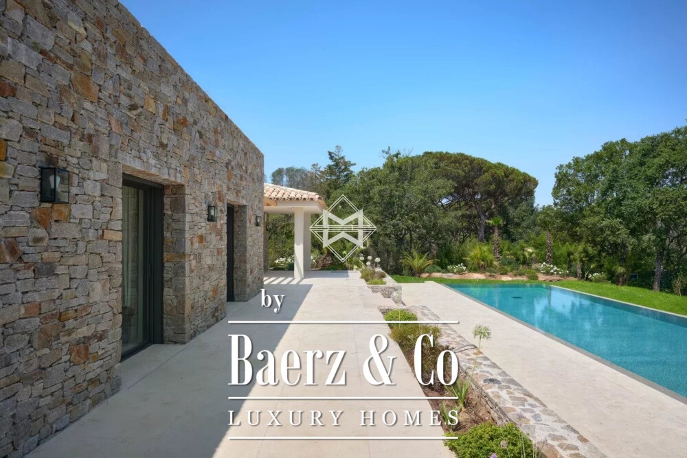 تقع هذه العقارية الفاخرة في سان تروبيه بالقرب من القرية والشواطئ الشهيرة في بامبلون، وتوفر ملاذاً هادئاً على أرض واسعة بمساحة 5,000 متر مربع. تمتد هذه الملكية المُشيَّدة حديثاً على مساحة 500 متر مربع، حيث يتوازن التصميم بشكل مثالي بين الإضاءة والحجم واستخدام المواد الراقية، ليمنح إحساساً بالأناقة الهادئة.