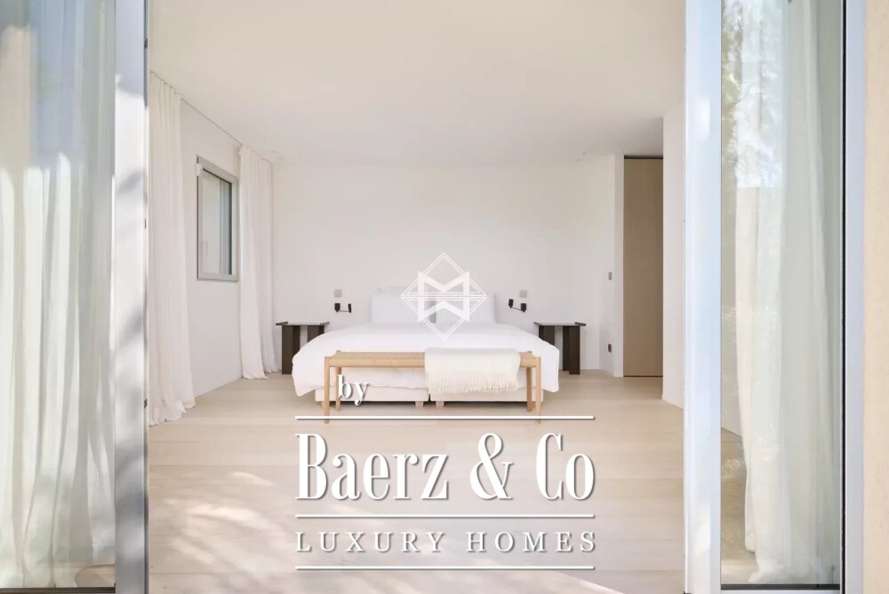 توزع الفيلا على مستويين وقبو مضاء يشع بالضوء، وتضم ثماني غرف نوم بينها جناح رئيسي مع تراس خاص، وغرفة ملابس فسيحة، وحمام، ودش منفصل. مساحات المعيشة في الطابق الرئيسي تتداخل بين صالون بمدفأة وغرفة طعام ومطبخ مجهز بالكامل مع غرفة خدمات ملحقة. الشرفات الواسعة المغطاة والمفتوحة تؤطر إطلالات الحديقة، وتوفر انتقالاً سلسًا بين المساحات الداخلية والمناطق الخارجية المصممة بعناية.