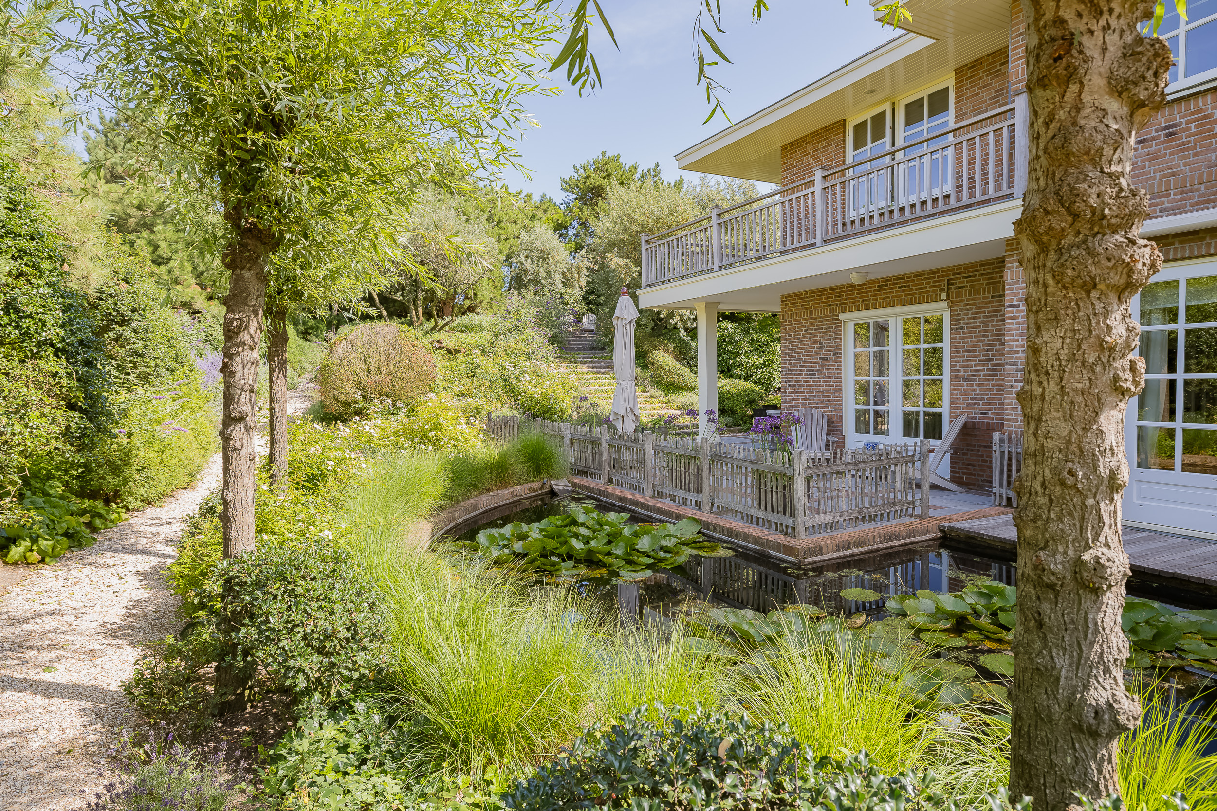 Im Garten, entworfen von Arend Jan van der Horst, verschmilzt das Anwesen durch Terrassen, versteckte Sitzplätze, blühende Beete und einen stillen Teich harmonisch mit der Dünenlandschaft. Die Atmosphäre ist privat und ruhig – eine tägliche Einladung, in der Natur zu verweilen. Die Villa Noordwijk Zuidduinen ist ein seltenes Angebot, das Kenner überzeugt, die Wert auf Herkunft, Architektur und Diskretion an der Küste legen.