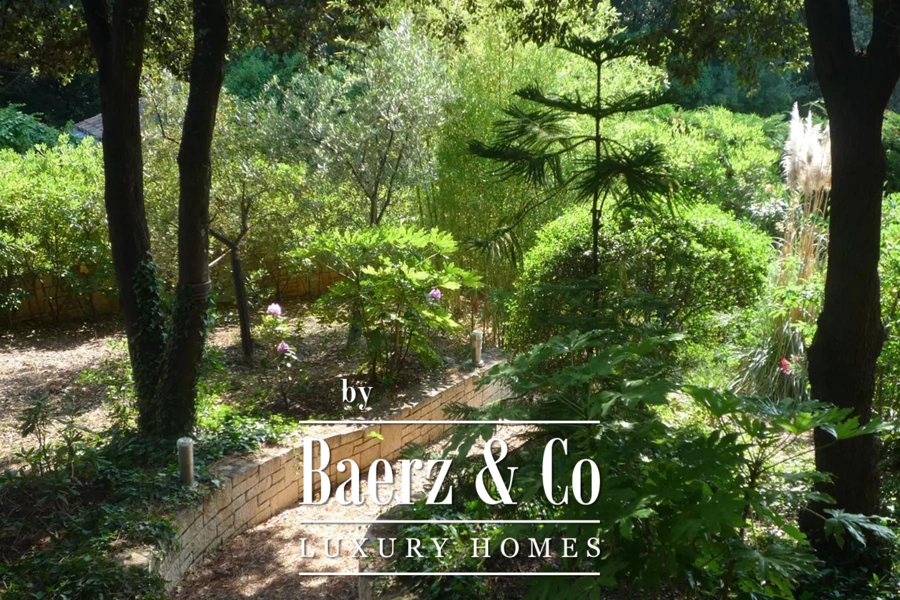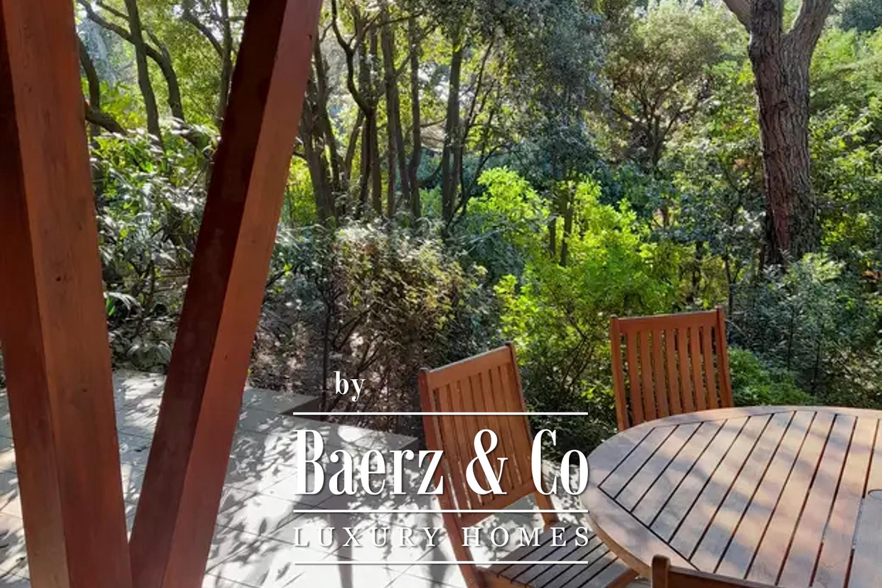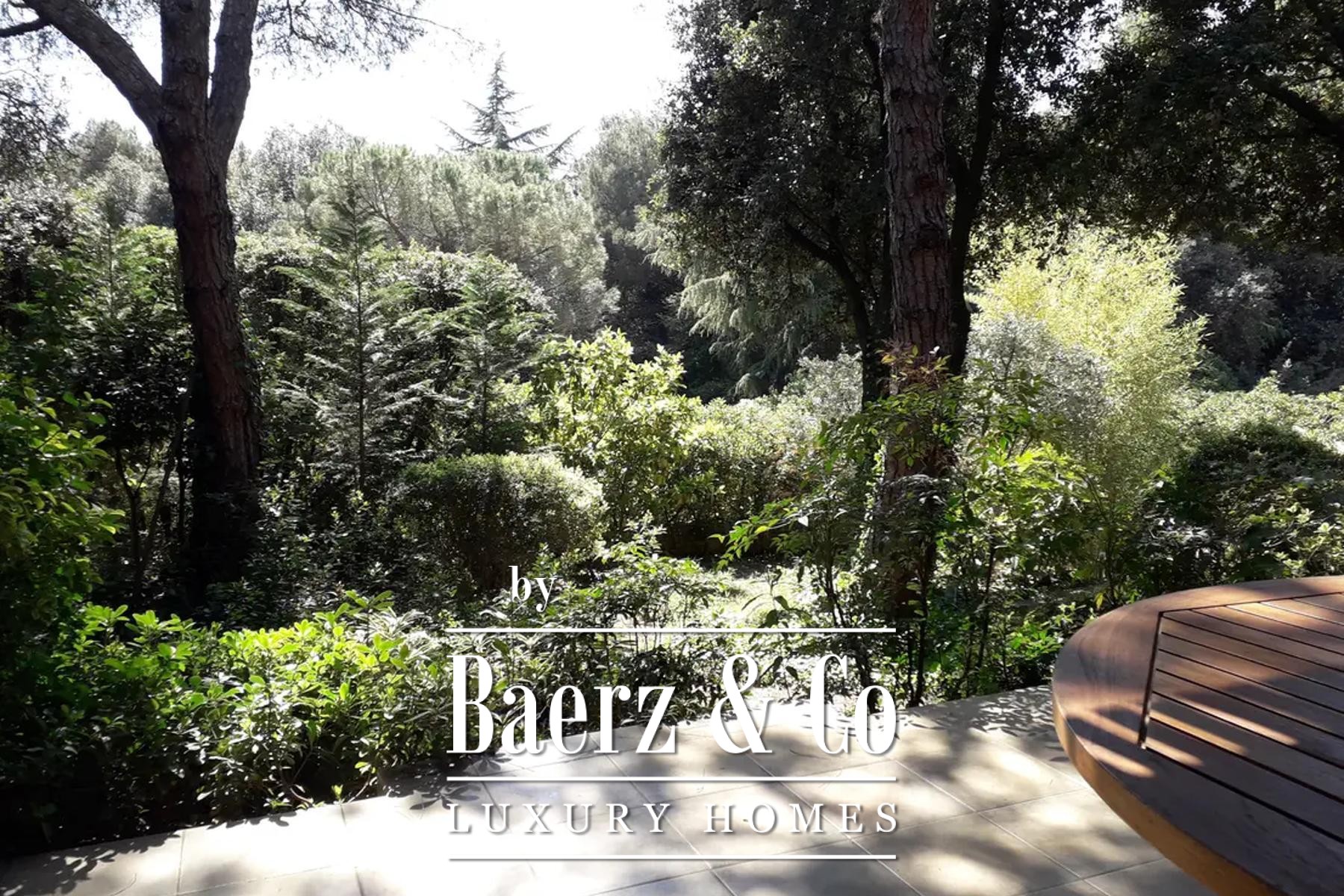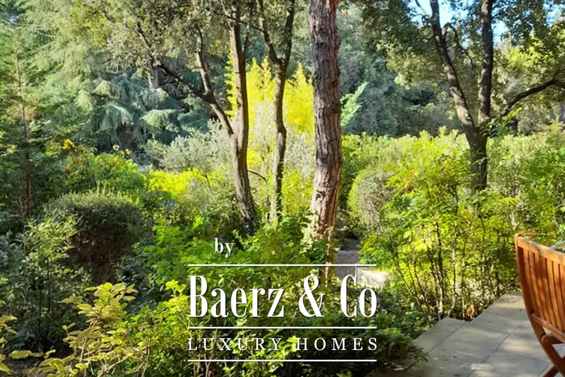 Im Obergeschoss öffnen sich vier ruhige Schlafzimmer zu Balkonen. Eine Galerie und eine schattige Terrasse verbinden den Wohnbereich mit einer Dachlandschaft für kontemplative Stunden oberhalb des Gartens. Das Untergeschoss beherbergt eine verglaste Sommerküche und einen Wellnessbereich mit Sauna, Pools und gestalteter Terrasse, während ein Keller Stauraum, zentrale Haustechnik und eine Waschküche bietet.