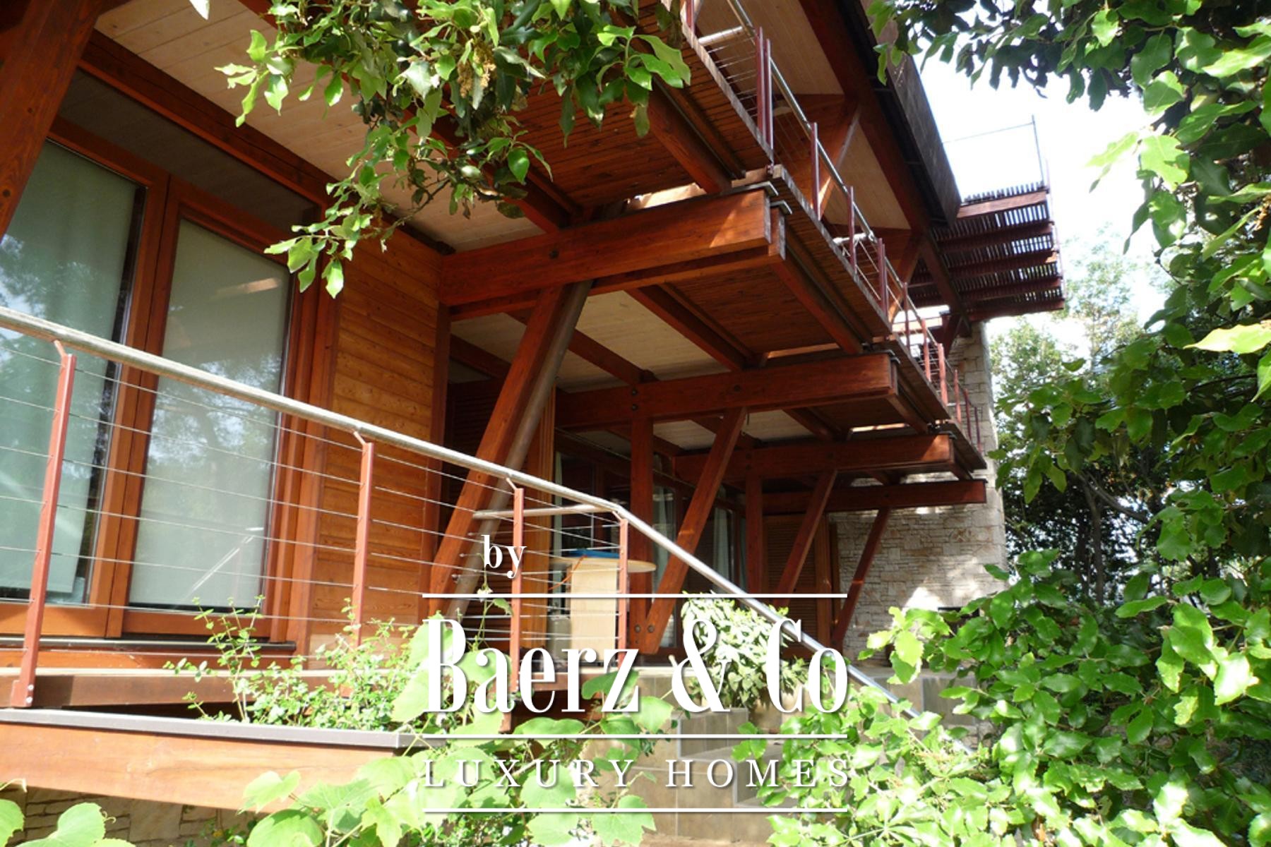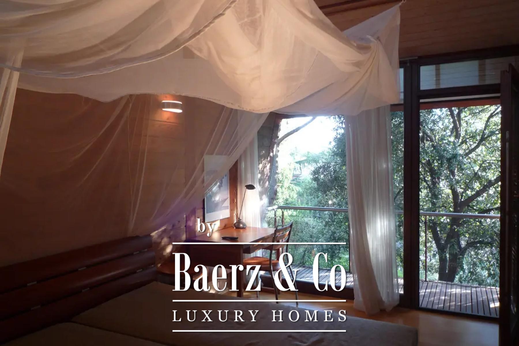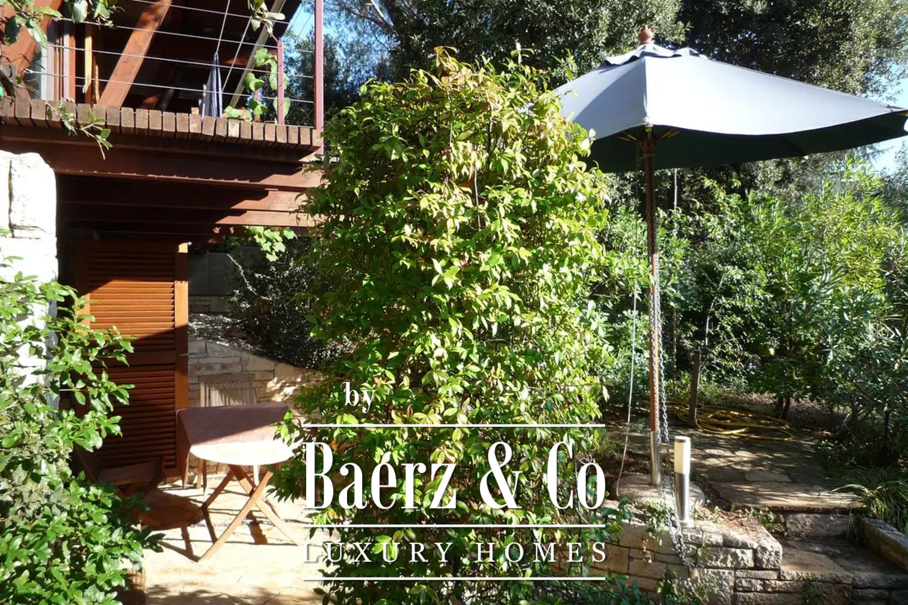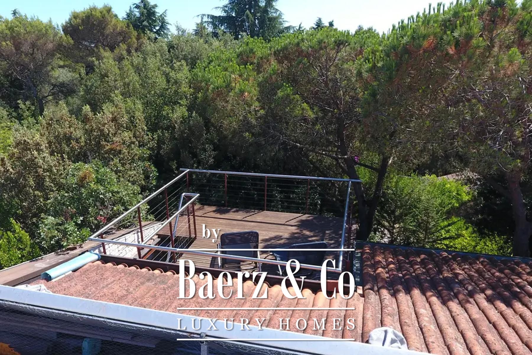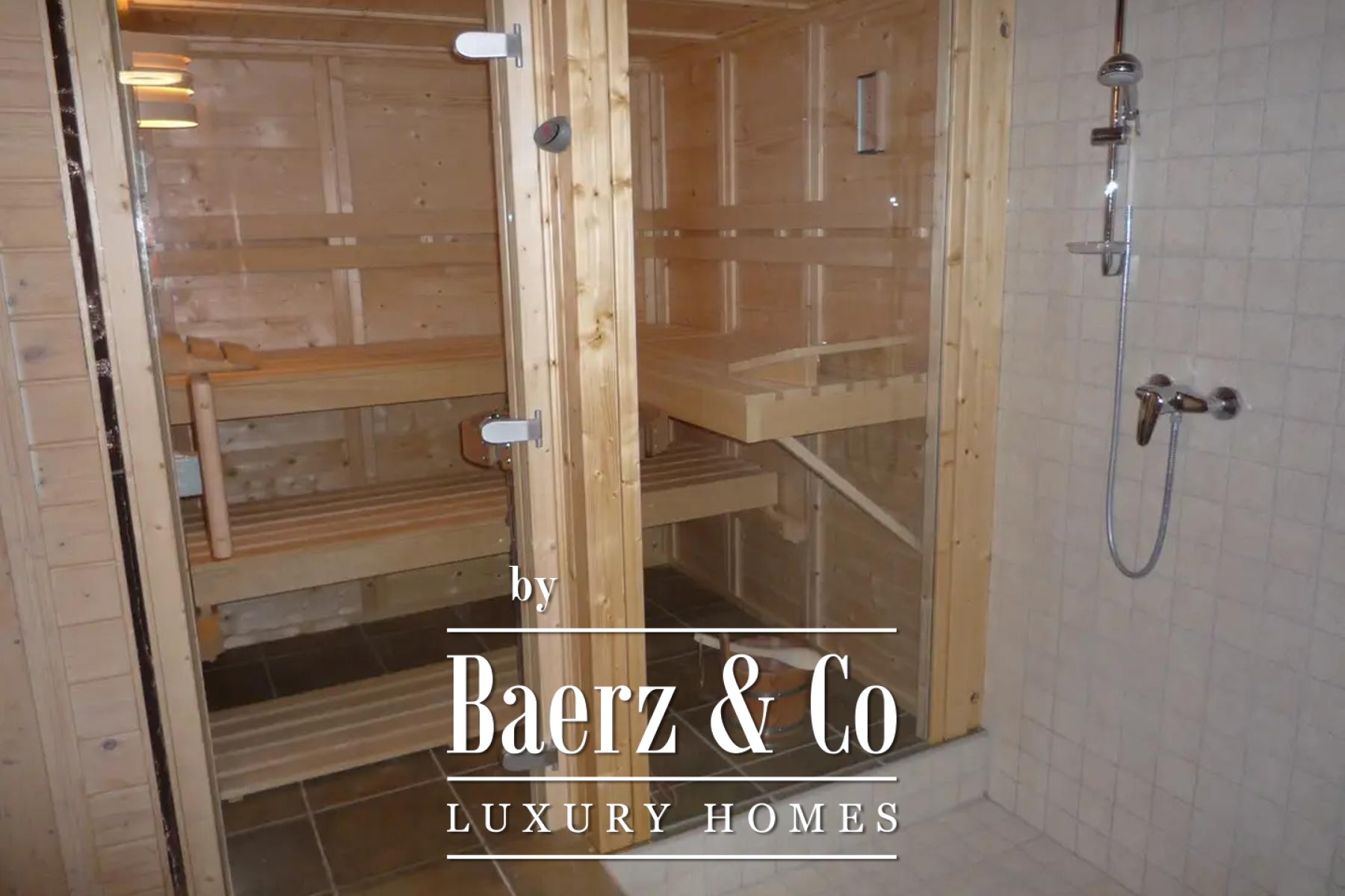 Im Obergeschoss öffnen sich vier ruhige Schlafzimmer zu Balkonen. Eine Galerie und eine schattige Terrasse verbinden den Wohnbereich mit einer Dachlandschaft für kontemplative Stunden oberhalb des Gartens. Das Untergeschoss beherbergt eine verglaste Sommerküche und einen Wellnessbereich mit Sauna, Pools und gestalteter Terrasse, während ein Keller Stauraum, zentrale Haustechnik und eine Waschküche bietet.