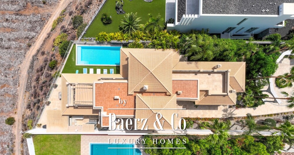 An elevator navigates all levels, complemented by advanced domotic systems, integrated security, and sustainable solar technology. Entertain effortlessly between two kitchens, indoor and al fresco dining areas, a wine cellar, gym, private bar, and barbecue terrace. A 52 m² garage accommodates up to four vehicles discreetly. This mansion in Golf Costa Adeje Tenerife invites a pace marked by refined outdoor rituals, elegant entertaining, and a rare sense of timeless sanctuary.