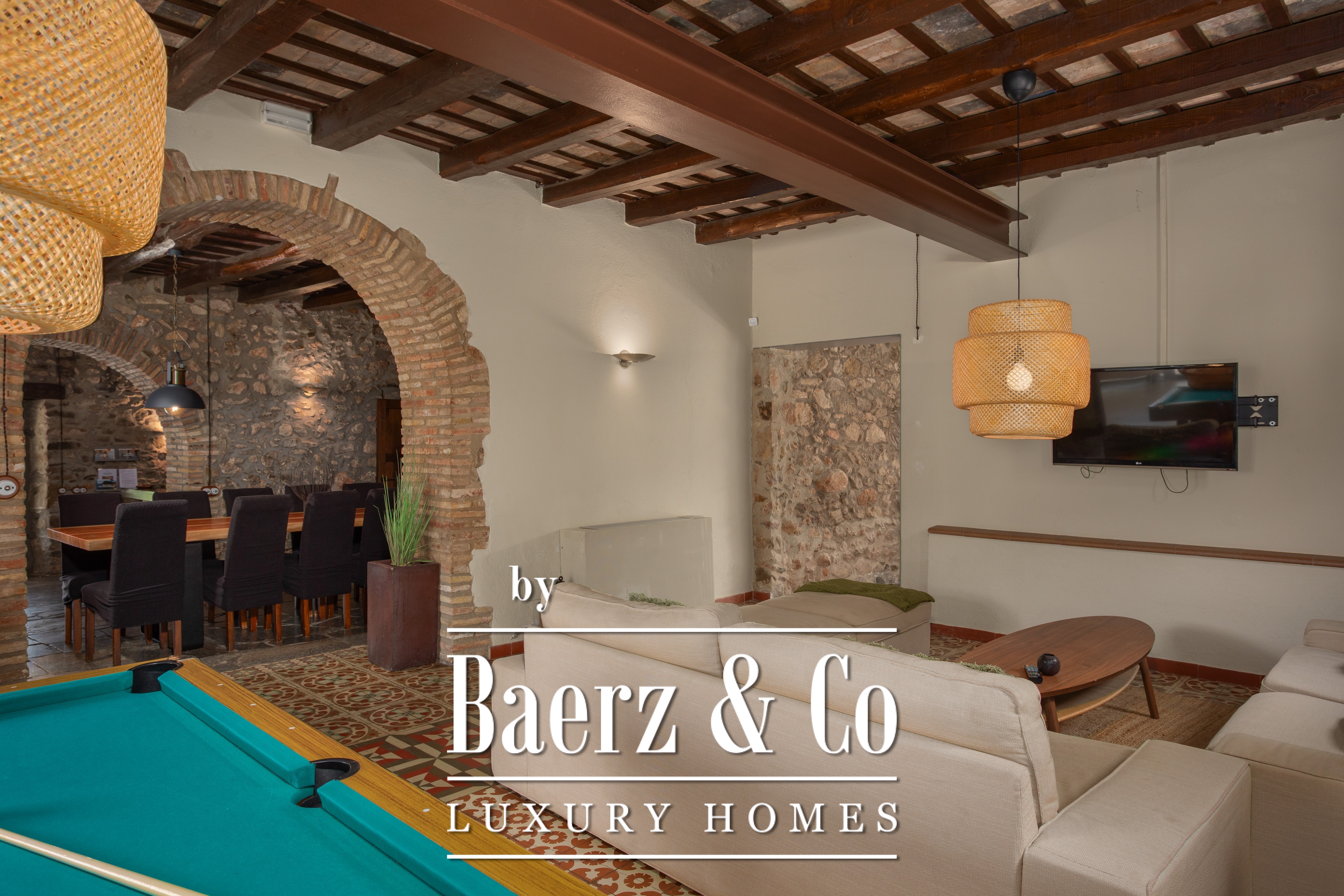 Currently operating successfully as a rural retreat, the sale includes both the estate and its established business, with a robust operational framework supporting immediate and future growth. Expansion rights are in progress, with plans for eco-lodges, guest accommodations, and a convention facility envisioned to meet growing regional tourism. This masia for sale in Amer fuses heritage, nature, and elegance, offering understated luxury and long-term potential.