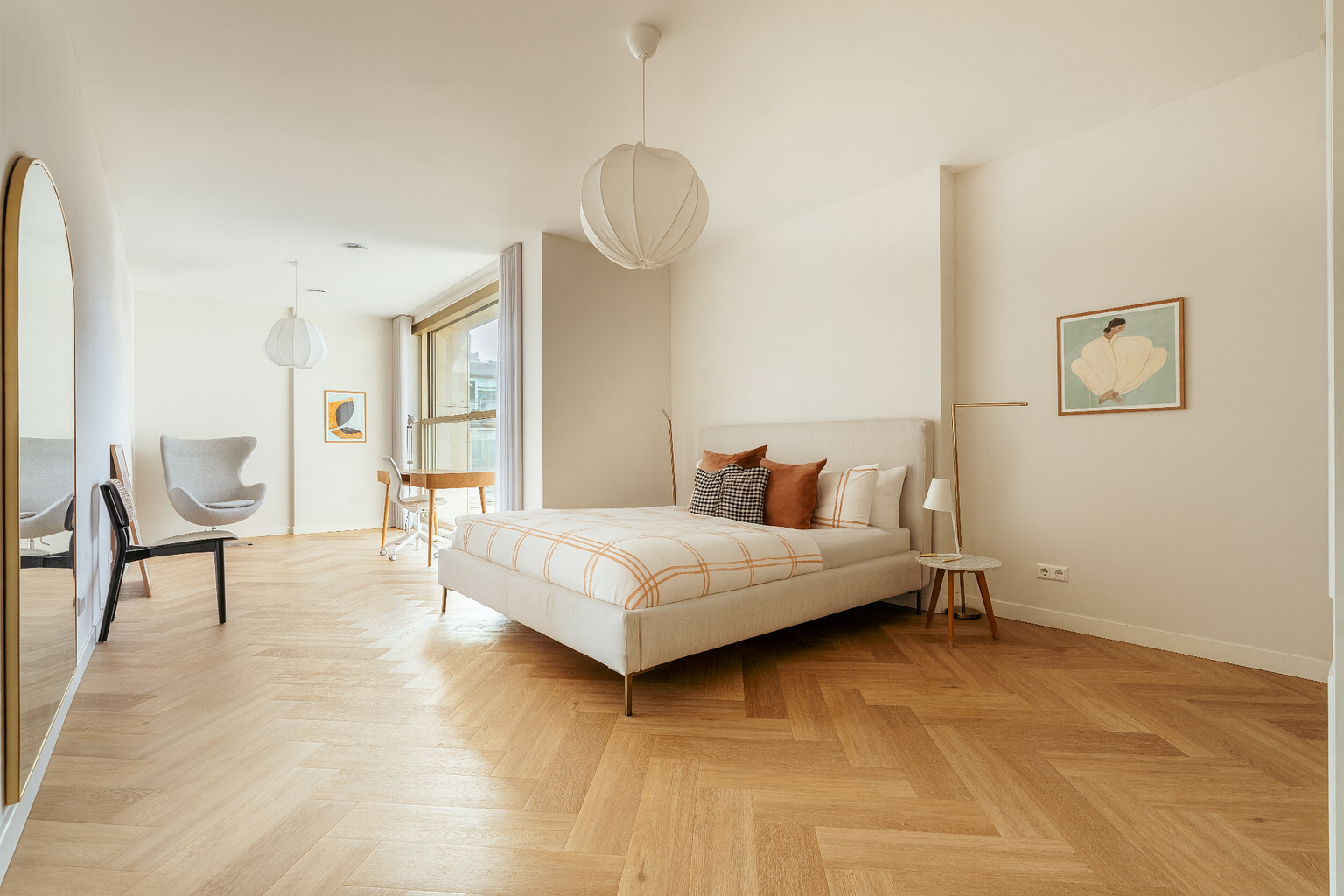 This turn-key apartment of approx. 137 m² is located in a stylish complex in a prime location in Amsterdam. The property includes a private parking space, three bedrooms, two balconies, and a luxurious open-plan kitchen. In addition, the home is exceptionally energy-efficient with an A+++ energy label.