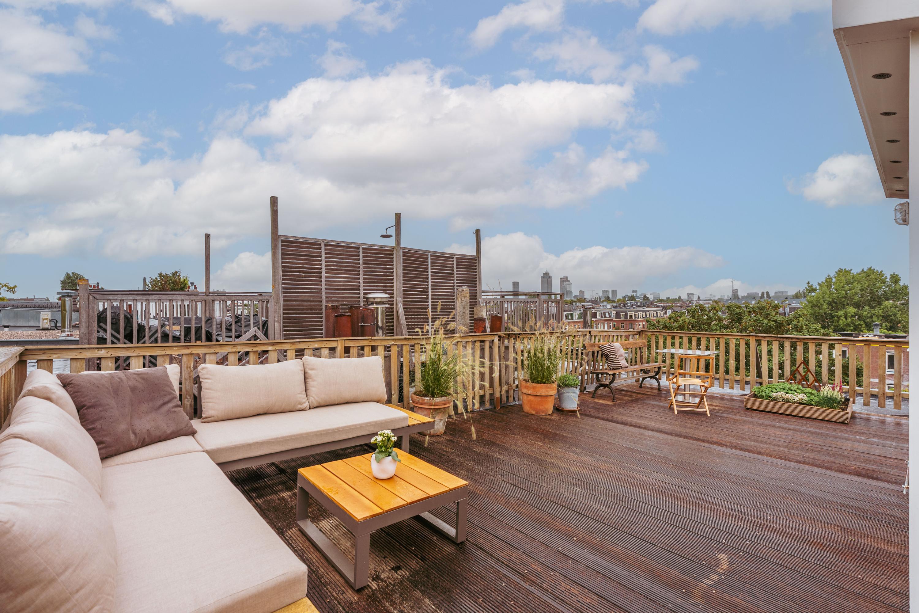 The true highlight of this property is the spacious roof terrace of approx. 38m². A fixed staircase leads to the top floor, providing direct access to this exceptional outdoor retreat. Extending across the entire width of the property, it offers unique, unobstructed views over the Sarphatipark and the city skyline.