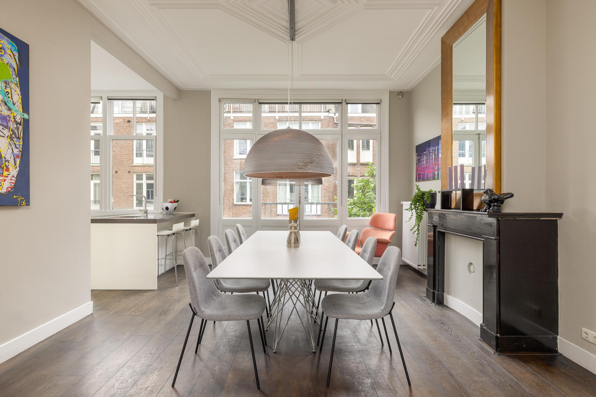 The apartment is located in one of the most charming spots on Valeriusstraat in Amsterdam Oud-Zuid, between Valeriusplein and Amstelveenseweg. The Vondelpark, as well as the many (neighborhood) shops, lunchrooms, restaurants, and supermarkets, are in the immediate vicinity of this beautiful house. By bike, you can reach the city center and Zuid station in 10 minutes. Various primary and secondary schools and the VU Medical Center are easily and quickly accessible. Additionally, The British School of Amsterdam is just a 2-minute walk from the house. Valeriusstraat is a one-way street. The neighborhood is well connected to public transportation, with taxi, tram, and bus connections at Haarlemmermeerstation within walking distance, and you can reach the A10 Ring Road (S108) by car in 5 minutes. A parking permit for one car can be obtained immediately.