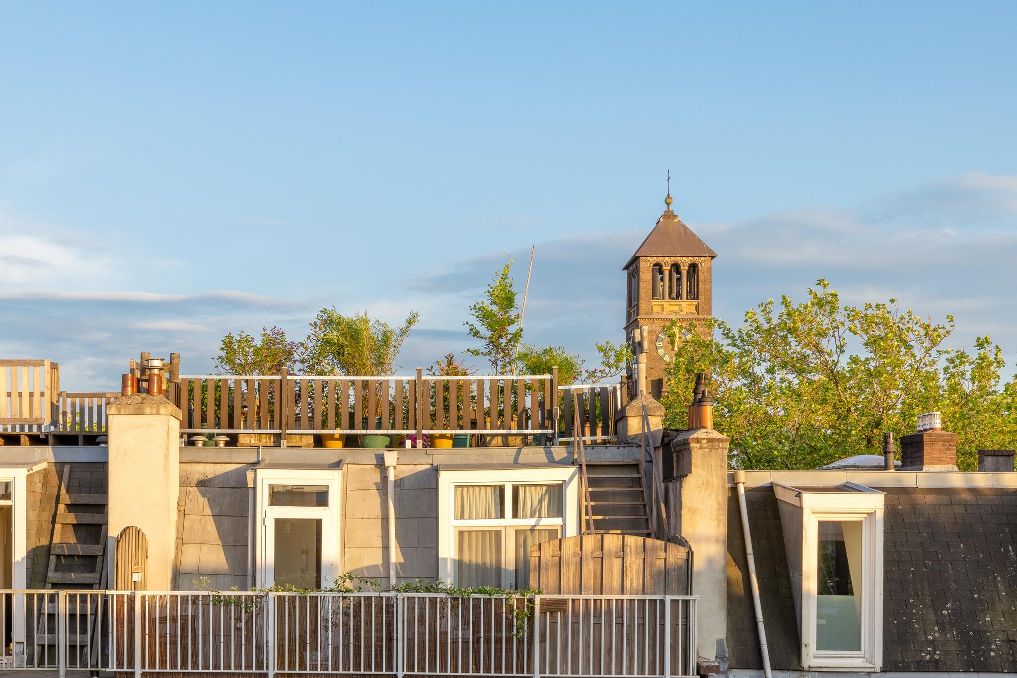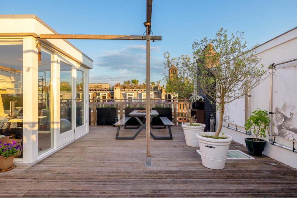 At a fantastic location in the popular Amsterdam Oud-Zuid, we offer this wonderfully bright and spacious double upper house. The beautiful roof terrace provides plenty of privacy, and you can enjoy the sun all day long. Multiple seating areas can be created. The house has three bedrooms, a spacious walk-in closet, and a roof terrace structure that can also be set up as a home office or yoga space. At the front of the house, there is also a lovely balcony.