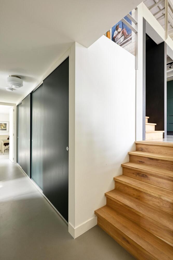 De vloeren zijn grotendeels uitgevoerd in gevlinderd beton die een knipoog zijn naar het industriële karakter van de voormalige hangar. De vloeren zijn voorzien van vloerverwarming.