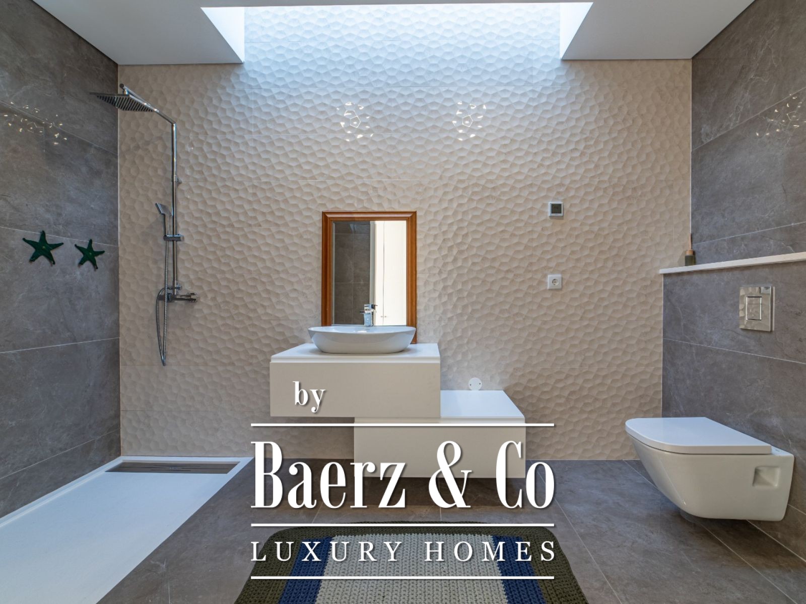 Four suites are defined by generous proportions, high quality finishes, and abundant natural light. The main living and dining area extends to 110 m² with direct connection to an open-space kitchen, creating an open flow for daily life or entertaining. A winter garden and multiple landscaped gardens enhance the spatial experience. Comfort is uncompromised with air conditioning, central heating, and an A-rated energy classification.