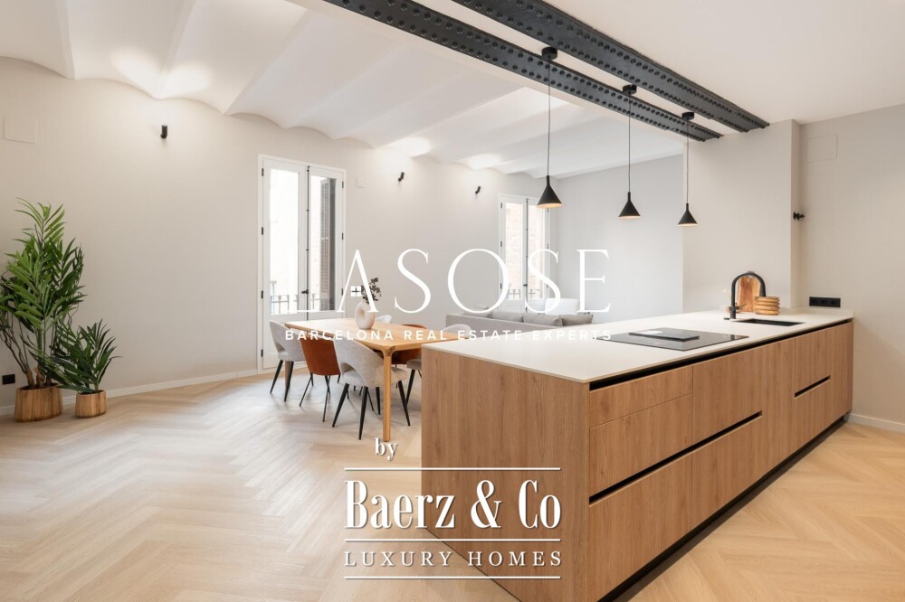Apartment Barcelona blends the authenticity of a classic building with the refinement of meticulous renovation, positioned in the city’s historic center near the Cathedral and the Palau de la Música. This apartment, offering 140 m² of built space and a living area of 119.72 m², exemplifies thoughtful restoration using high quality materials while preserving timeless features such as the Catalan vault and wooden shutters.