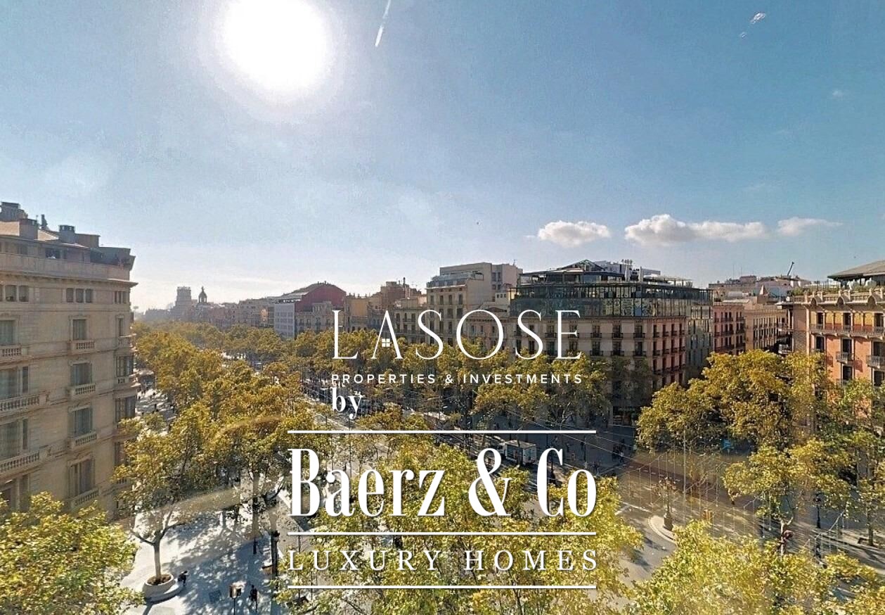 Lasose Properties presents a stunning property for sale in Passeig de Gracia with 180º panoramic views thanks to its beautiful location in a corner building. This spacious apartment offers exceptional brightness and proportionate open spaces, all of them exterior.. . The property consists of:. . 3 bedrooms (including 1 Master Suite with bathroom and dressing room).. 3 bathrooms. 1 toilet. 1 large living room with incredible view on the street. 1 professional kitchen with dining room + 1 pantry. 1 library. It also includes 2 storage rooms and 2 parking spaces in the price.. . This property is located in one of the most emblematic buildings of Passeig de Gracia, built in 2002 but preserving its majestic entrance. The building
