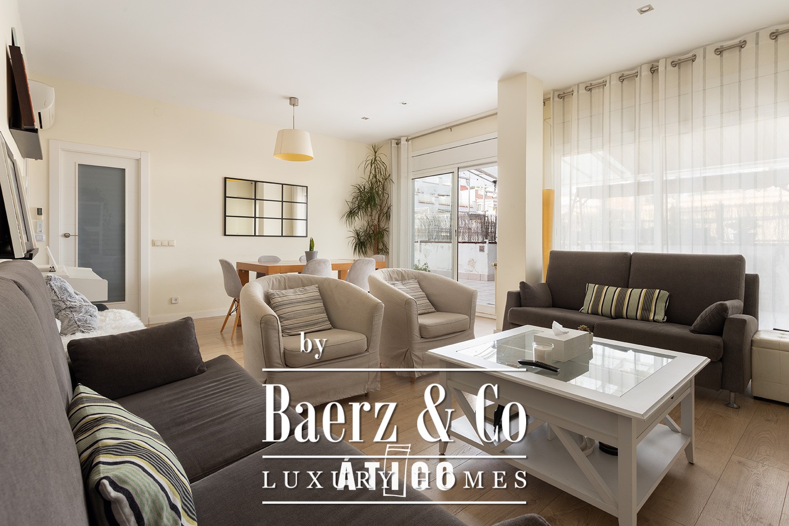 This penthouse, located in the Guinardó neighborhood (Barcelona), offers spacious, bright living spaces on a very quiet street. The home has 85 square meters of interior space and a 60-square-meter private terrace, providing a privileged outdoor space for enjoying the sun and unobstructed views of the city.