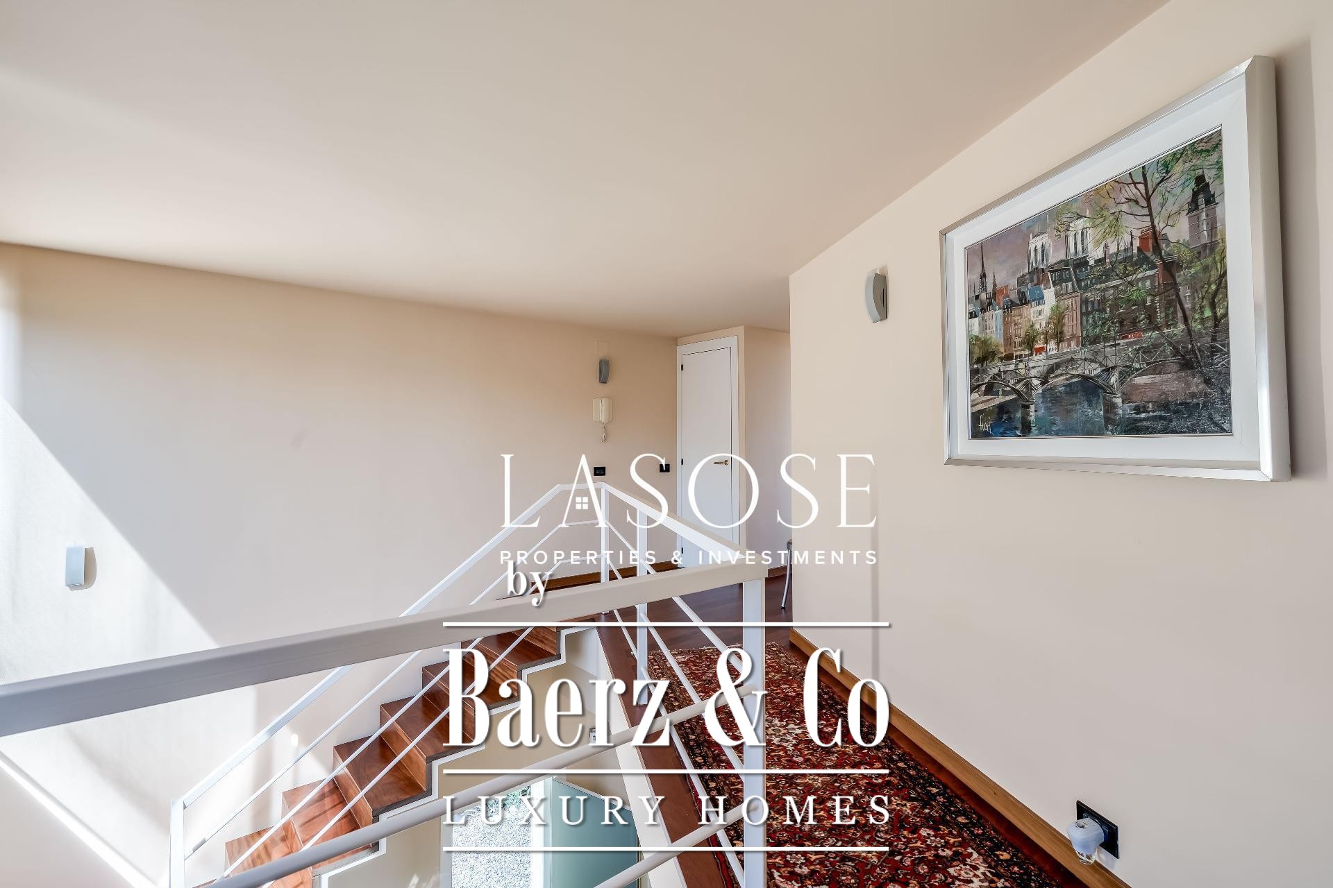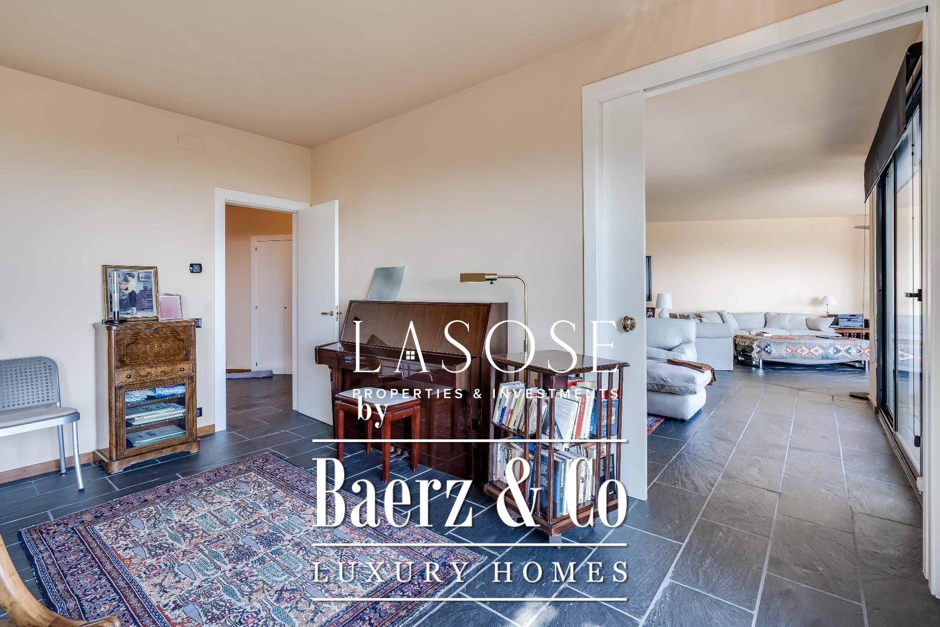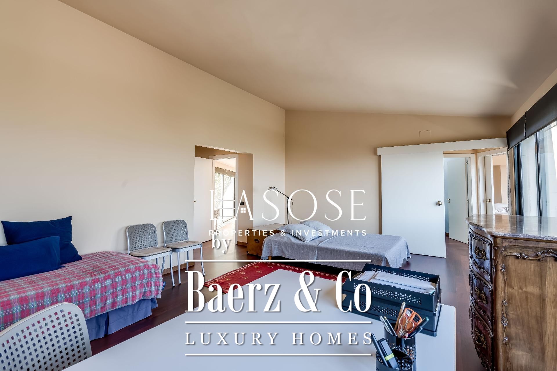 This extraordinary contemporary design house in Vallvidrera offers spectacular panoramic views of Barcelona and is located within walking distance of the city center and Sarriá via the funicular.. . Upon entering the main floor, you will be greeted by a spacious entrance hall leading to an impressive living-dining room with access to a 90 m² terrace offering unobstructed panoramic views.. . The independent kitchen is fully equipped and has a pantry and a laundry area with separate entrance. . . Adjacent to the living room, you will find a bedroom with bathroom, which is currently used as a living room, but can be converted into an additional bedroom. Slate underfloor heating. In addition, from inside the house, there is access to the garage with capacity for two cars.. . Upstairs, the sleeping area houses two spacious bedrooms with a generous dressing room and a full bathroom. Large windows flood this area with natural light and offer unparalleled views of the city of Barcelona. Underfloor parquet flooring.. . Descending to the lower floor, you will discover a 115 m² summer apartment with dressing room and full bathroom, with independent access.. . From here, you will enjoy direct access to the garden area, swimming pool, machine room and a small storage room.. . This magnificent residence