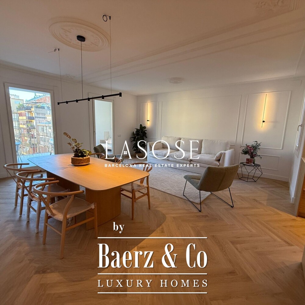 Apartment Barcelona in Antiga Esquerra de l’Eixample is set within a distinguished finca regia, moments from Passeig de Gràcia and Plaza de Catalunya. This residence offers an exceptional synthesis of preserved character and contemporary refinement, creating a compelling space for a discerning international audience. The apartment is delivered fully furnished with sophisticated designer pieces, offering 162 m² that invite immediate enjoyment.