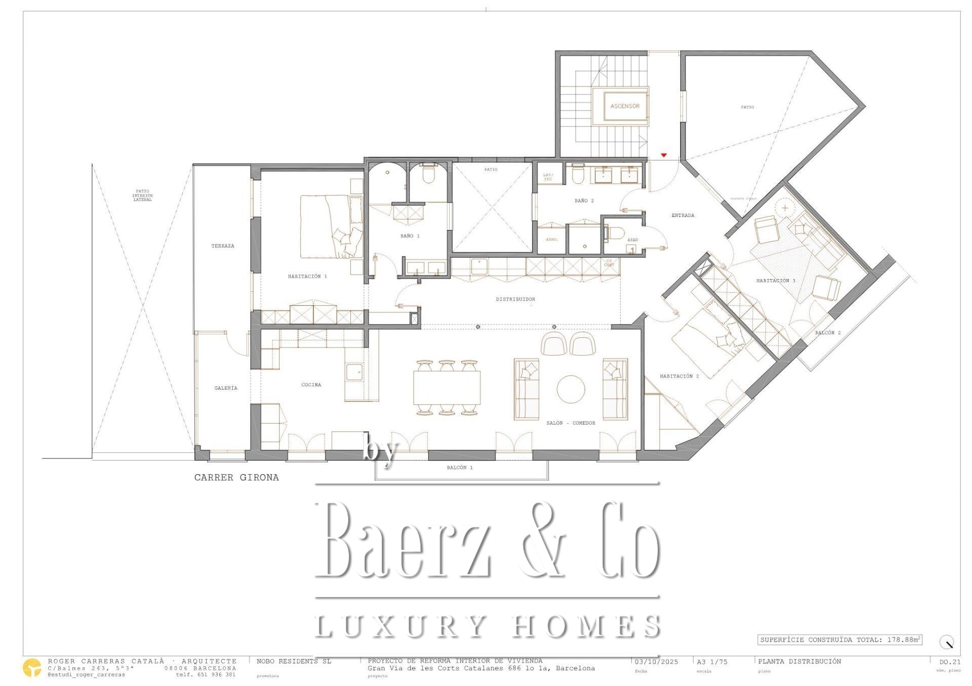 Apartment Barcelona stands as an invitation to refined urban living. This 199 m² residence on the third floor is newly renovated and thoughtfully designed to embrace natural light, with four balcony doors opening over Calle Girona and expansive windows enhancing the luminous atmosphere. The layout flows seamlessly from the open-plan kitchen and dining area to a living room anchored by a bespoke bar and pantry with two wine fridges and a second dishwasher.