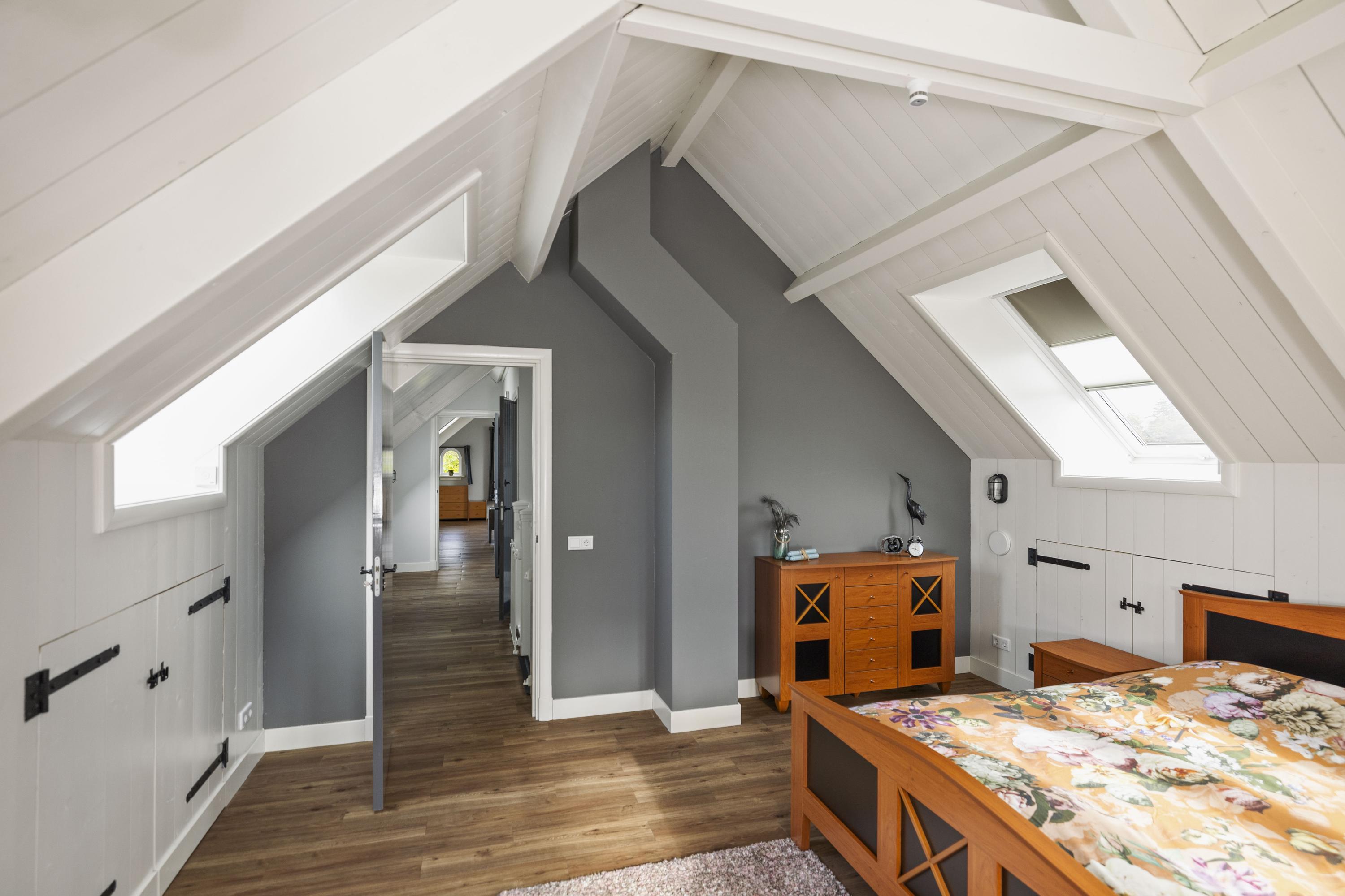 This magnificent farmhouse took on its current form in 2016, when the farm, which was built in 1924, was completely renovated. The emphasis was on sustainability: the exterior was fully insulated with polystyrene blocks, the house was fitted with new HR+++ glass all around, a water-water heat pump was installed (which exchanges and extracts heat at a depth of 75 metres), the interior floor was fitted with a robust cast floor – ideal in combination with underfloor heating – and a total of 110 (no, this is not a typo) solar panels were installed on the roofs. Under the bonnet, this house is all state-of-the-art technical ingenuity. Even the colour palette – the exterior is whitewashed with grey woodwork and beaded edging – contributes to the energy-efficient character of the house, because while the white facades reflect sunlight, the grey absorbs heat. Not only does this house have zero energy consumption, it also generates a considerable amount of energy! A home battery is therefore an excellent addition here.