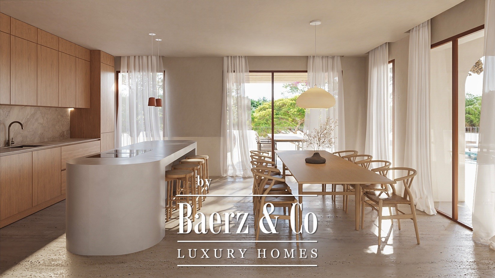 Villa in Benissa anchors itself in La Fustera, where nature frames this newly constructed detached villa. Set within an established residential enclave, the property captures expansive views including a glimpse of the sea, while being just 1 km from the coast and close to key amenities. The villa in Benissa blends modern architectural lines with Mediterranean influences, expressed through sleek volumes and the deliberate use of natural materials. Every space is conceived to maximize comfort and natural light, creating a continuous flow between the interior and the generous terraces, gardens, and the private pool.