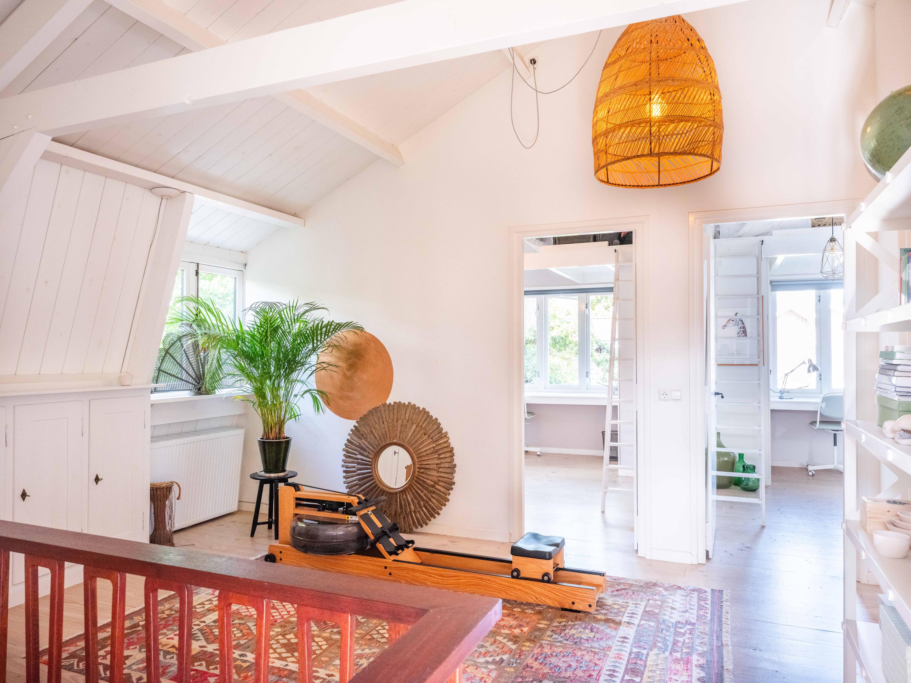 On the other side of the house, you will find the former atelier, now used as a guesthouse with a kitchenette and sleeping area. The roof has been insulated, and the upper floor is beautifully light and spacious.