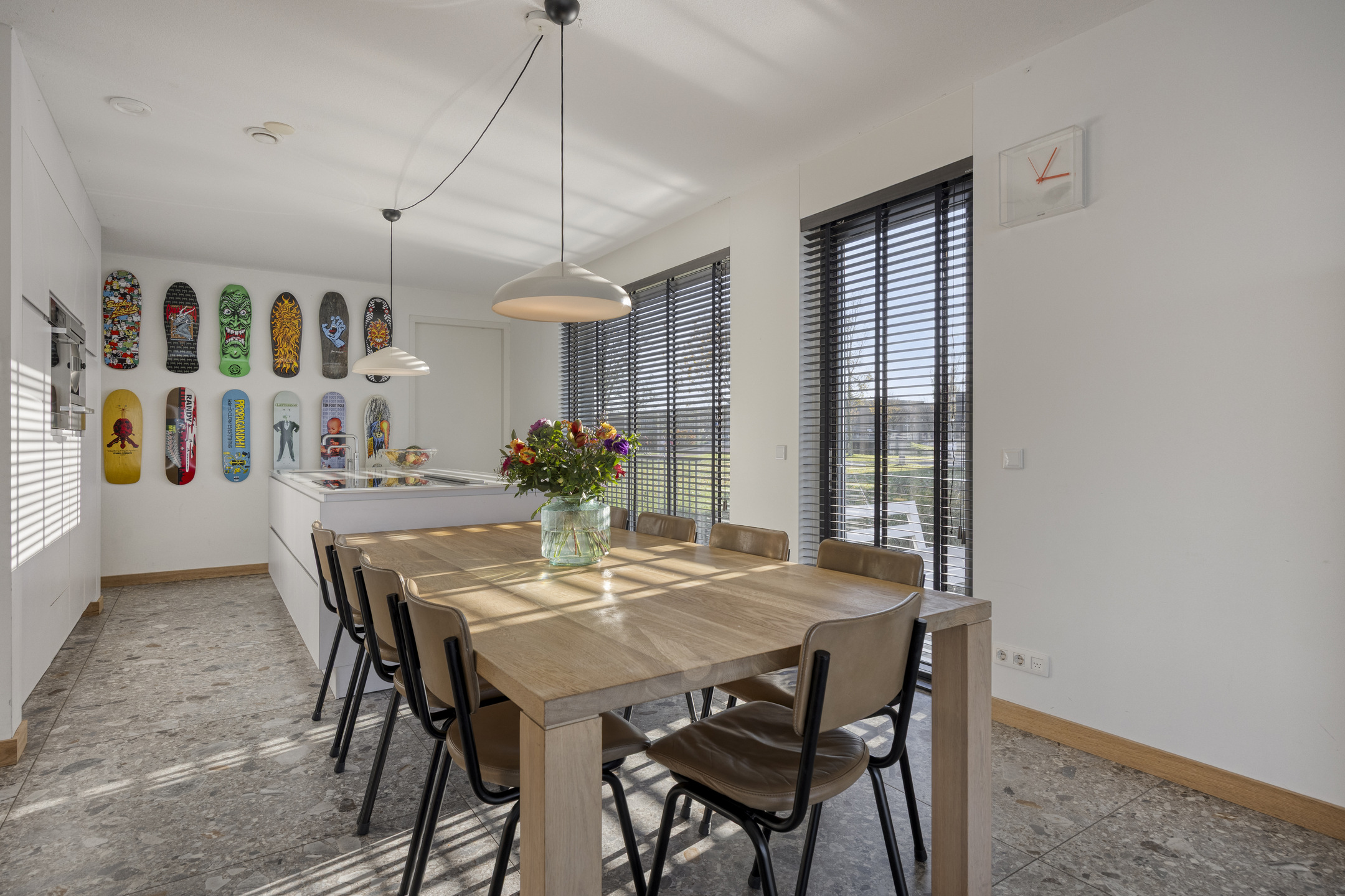 Outdoor living is pure enjoyment. The large deck offers ample space to relax, entertain, or dine with friends while enjoying the evening sun. Want to spend some time on the water? You can step straight into your own boat from the terrace and sail directly onto the Binnenschelde.
