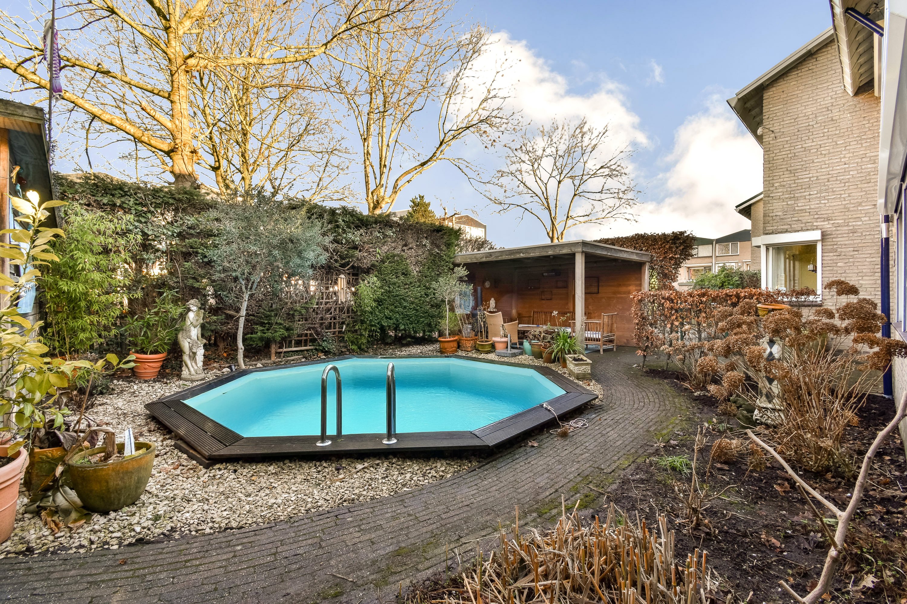 The garden is a private retreat on three sides of the house, facing southwest for optimal sunlight, offering a solar-heated outdoor pool, terraces, and established plantings. Modern comforts include double glazing, full insulation, mechanical ventilation, air conditioning, and energy class A status, with efficient heating and 14 solar panels. Security features and private on-site parking complete the sense of safety and exclusivity. This family house Bergschenhoek offers an elegant synthesis of spatial luxury and privacy, ready to meet modern living standards.