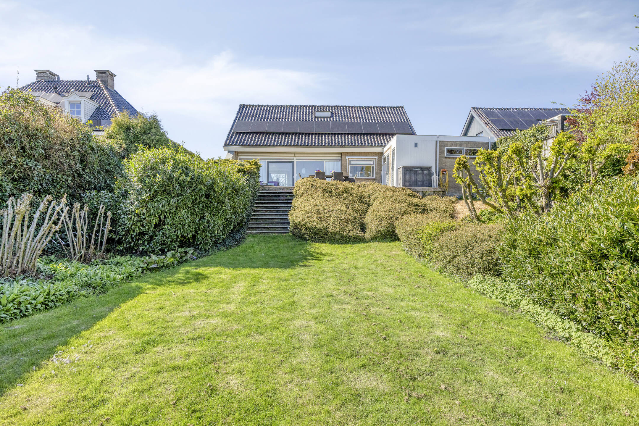 Outdoors, the garden, set across 830 m², is composed for privacy and a sense of natural retreat. Wide sliding doors unite the main living spaces with a deep, sunlit terrace, while automated awnings provide shade as needed. The setting is discreet yet within reach of local amenities, making this detached house Bleiswijk a rare opportunity for those who value space, sunlight, and village access.