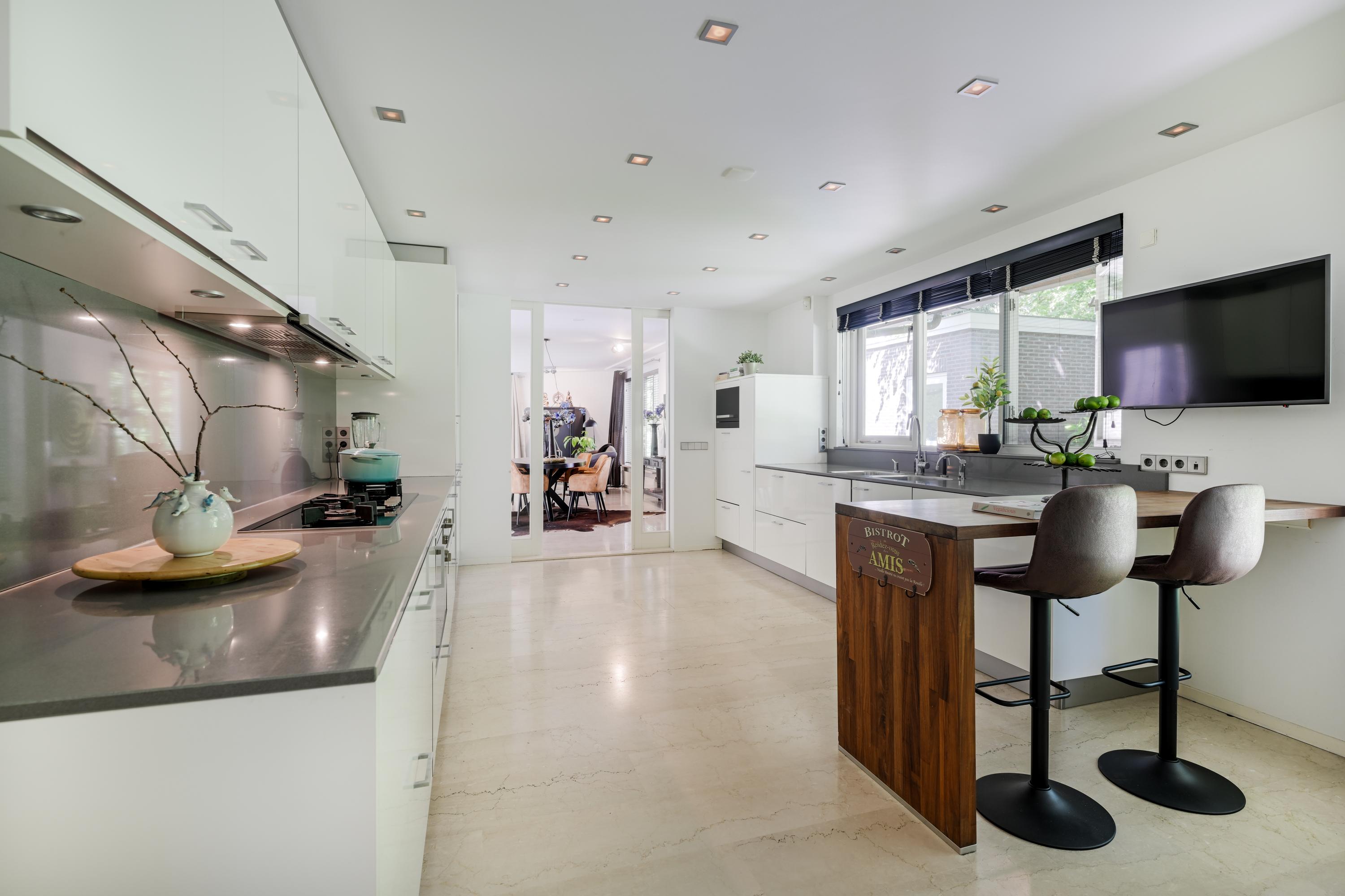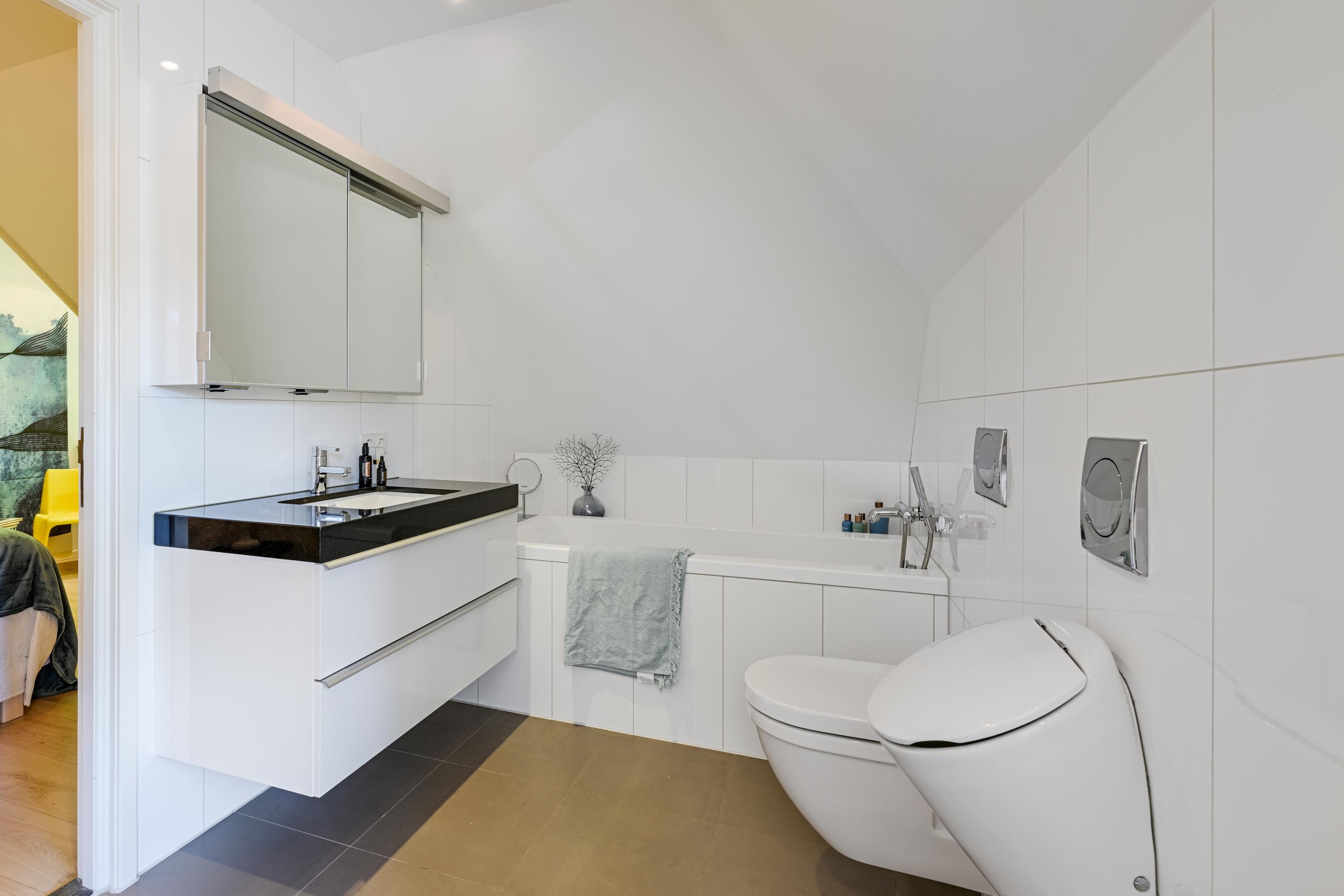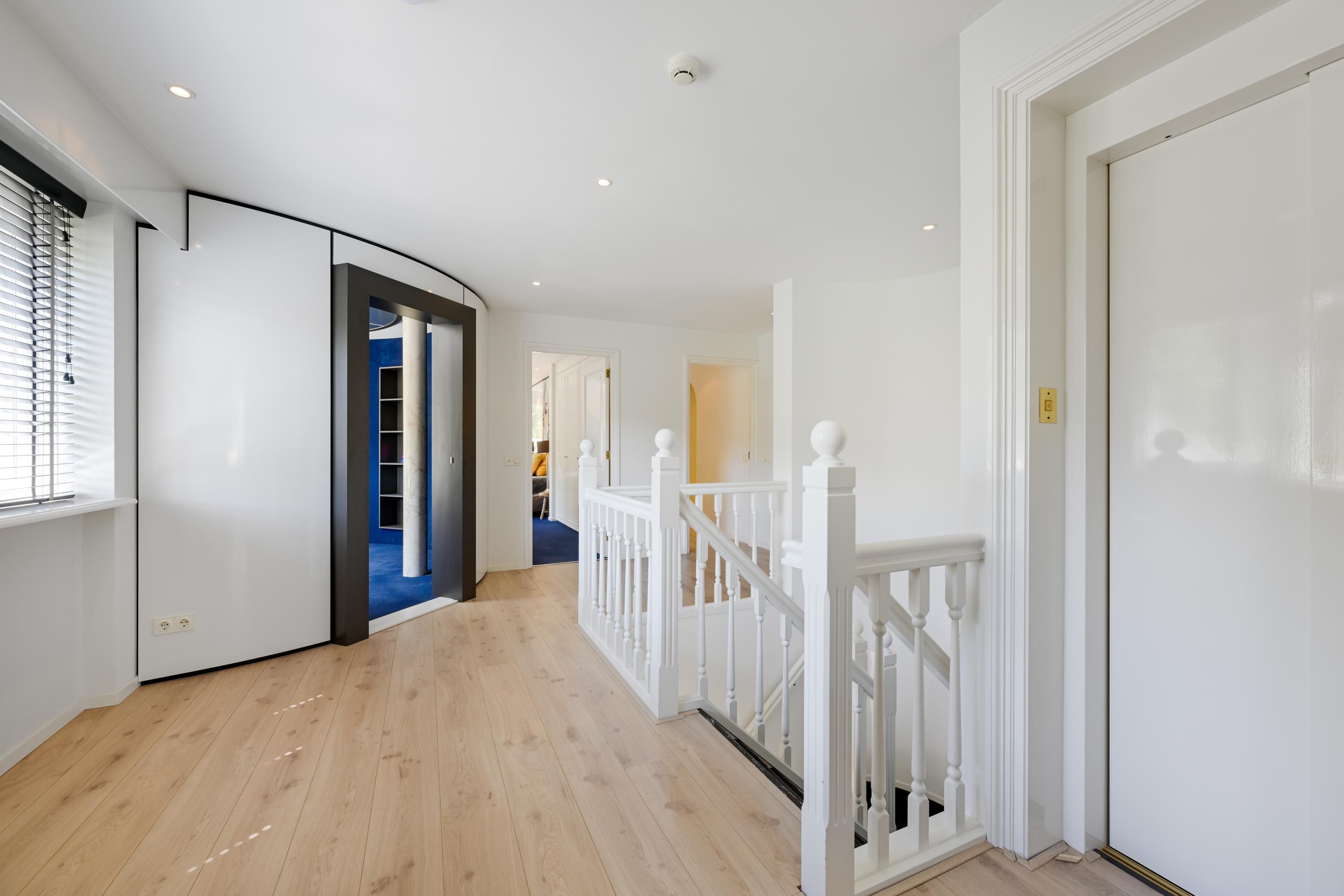 The villa, designed by architect Hans van Egmond, was constructed using high-quality materials and features a large living room and spacious kitchen, four bedrooms, two bathrooms, two or three studies/bedrooms, and a large attic floor. The house features a built-in lift to all levels, making it suitable for all stages of life.