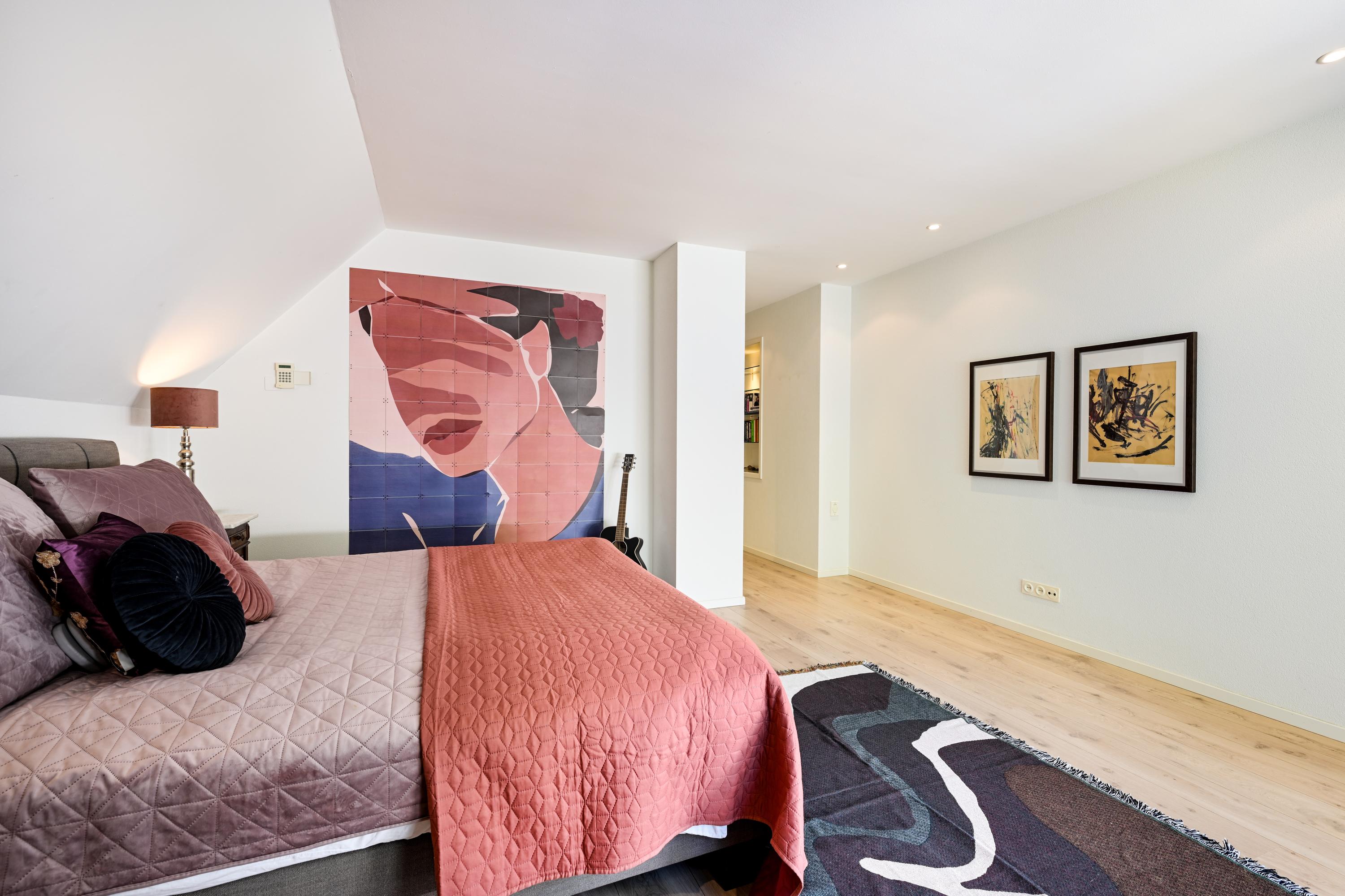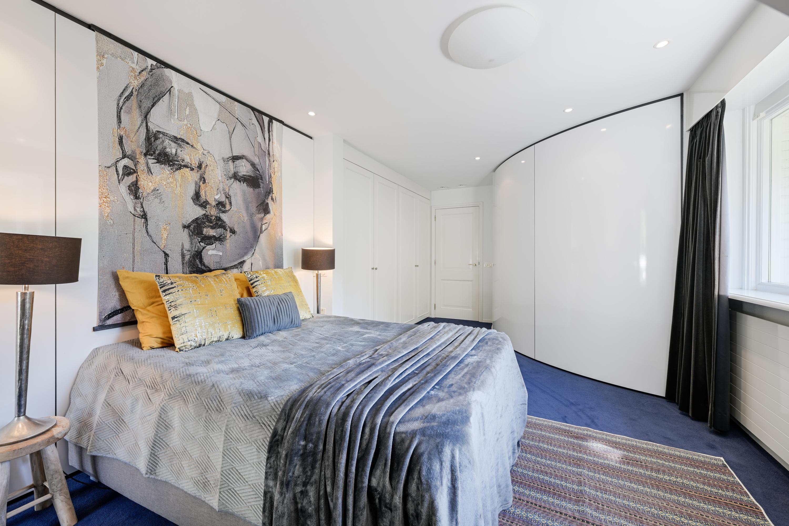 Hallway with staircase and lift, study with round bay window offering beautiful views, spacious bedroom with access to balcony, second large (master) bedroom with sheltered balcony offering beautiful views of the garden, hallway leading to dressing room and en-suite bathroom with bath, shower, double washbasin, urinal and toilet, underfloor heating. Third and fourth bedroom, both with dormer windows and both with access to a bathroom with bath, shower, toilet, urinal, washbasin and underfloor heating.
