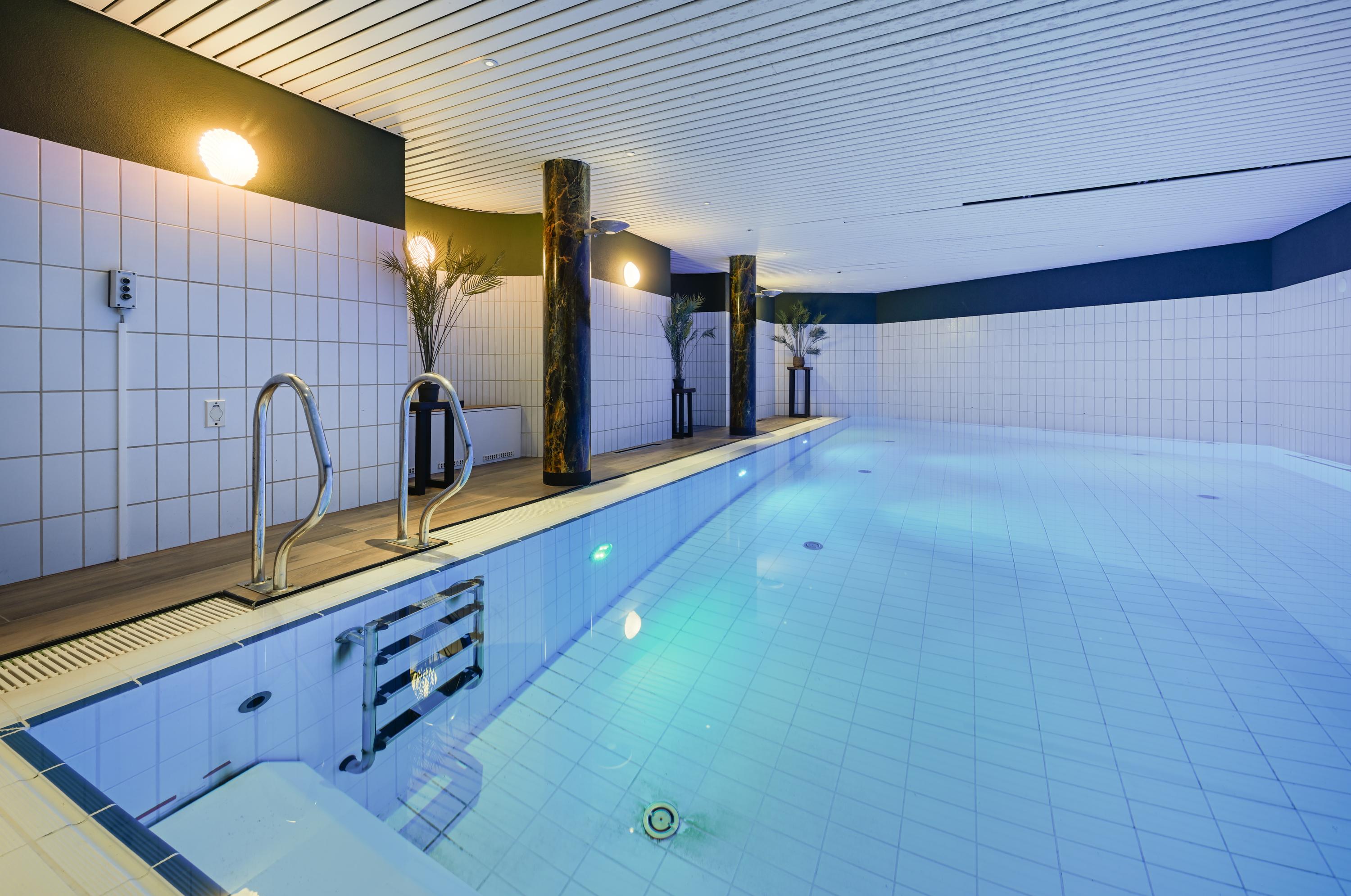 Basement: hall with staircase and lift, toilet with washbasin, large heated swimming pool with underwater lighting, changing room with shower. Spacious storage room with shelving units, storage space with external door, double doors to workspace and technical room, double garage.