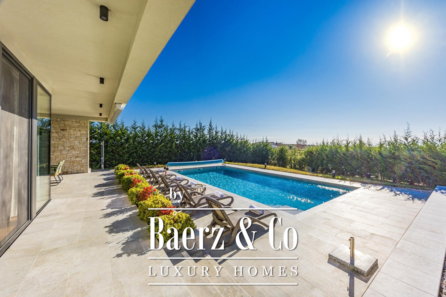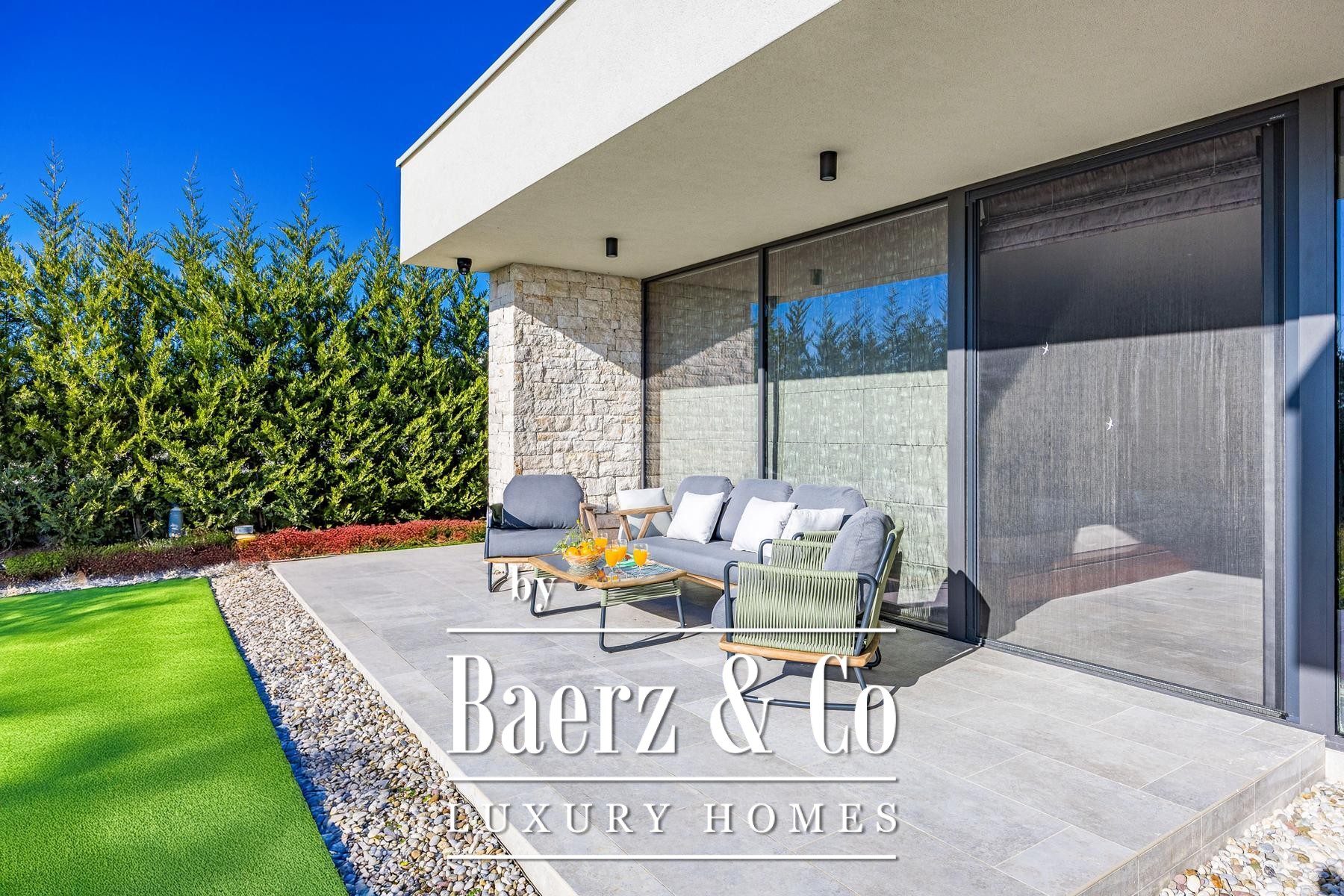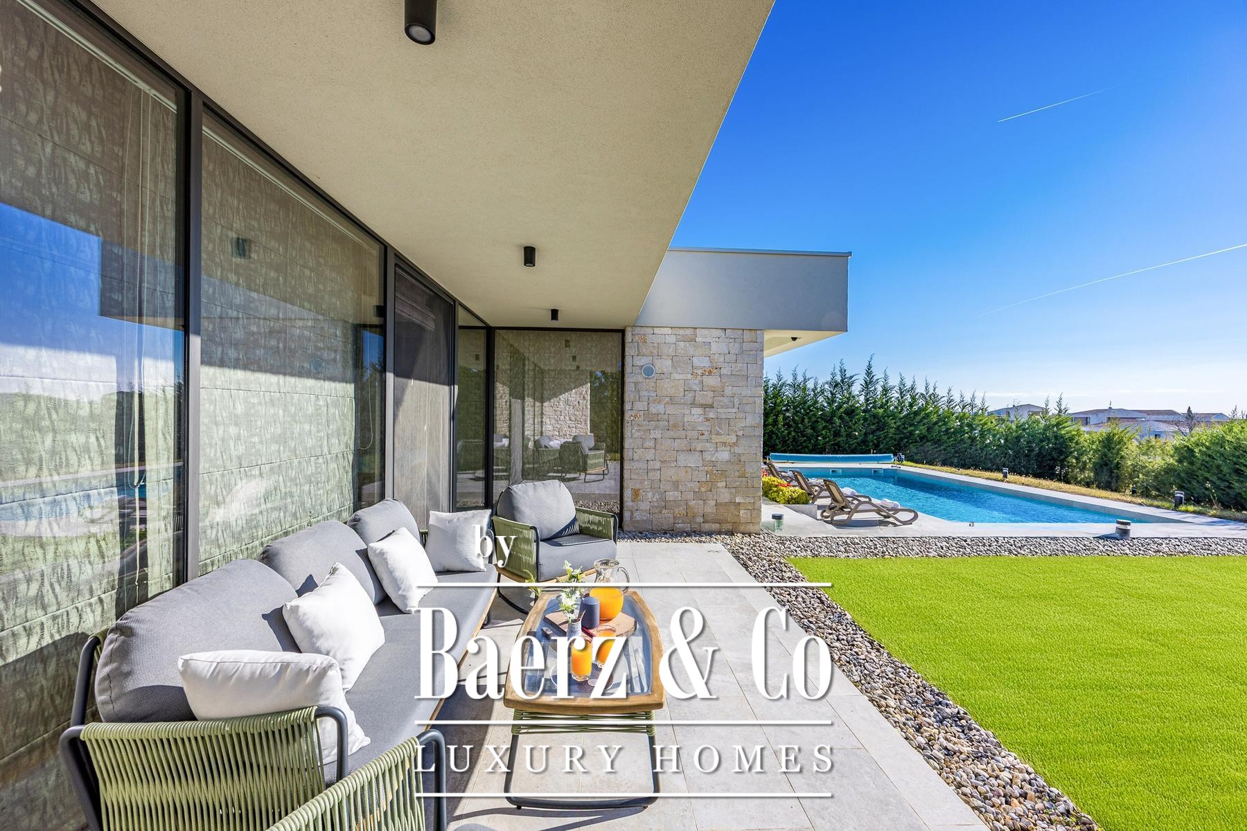 Villa Brtonigla welcomes you to the heart of Istria, where contemporary design meets understated luxury. This villa Brtonigla, set across 341 m² of refined living space, is crafted for those who seek both elegance and calm. The property’s terraces offer panoramic sea views, while expansive glass walls connect the light-filled interiors to a meticulously landscaped garden of 760 m².