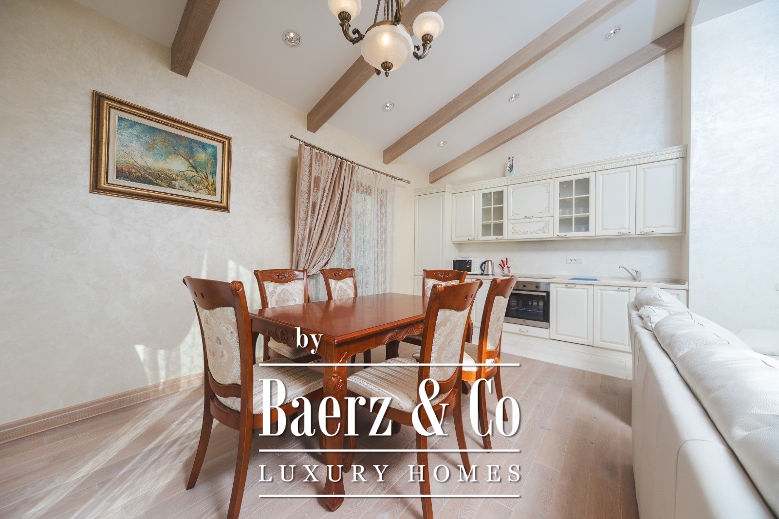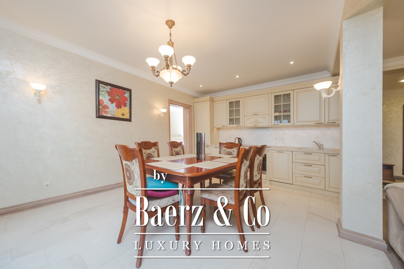Three living rooms, each paired with kitchens and dining areas, lend flexibility for multi-generational living or hosting, while three private bathrooms ensure comfort and privacy. The 320m² plot is complemented by a private pool for quiet afternoons, and two garage spots offer ease and discretion.