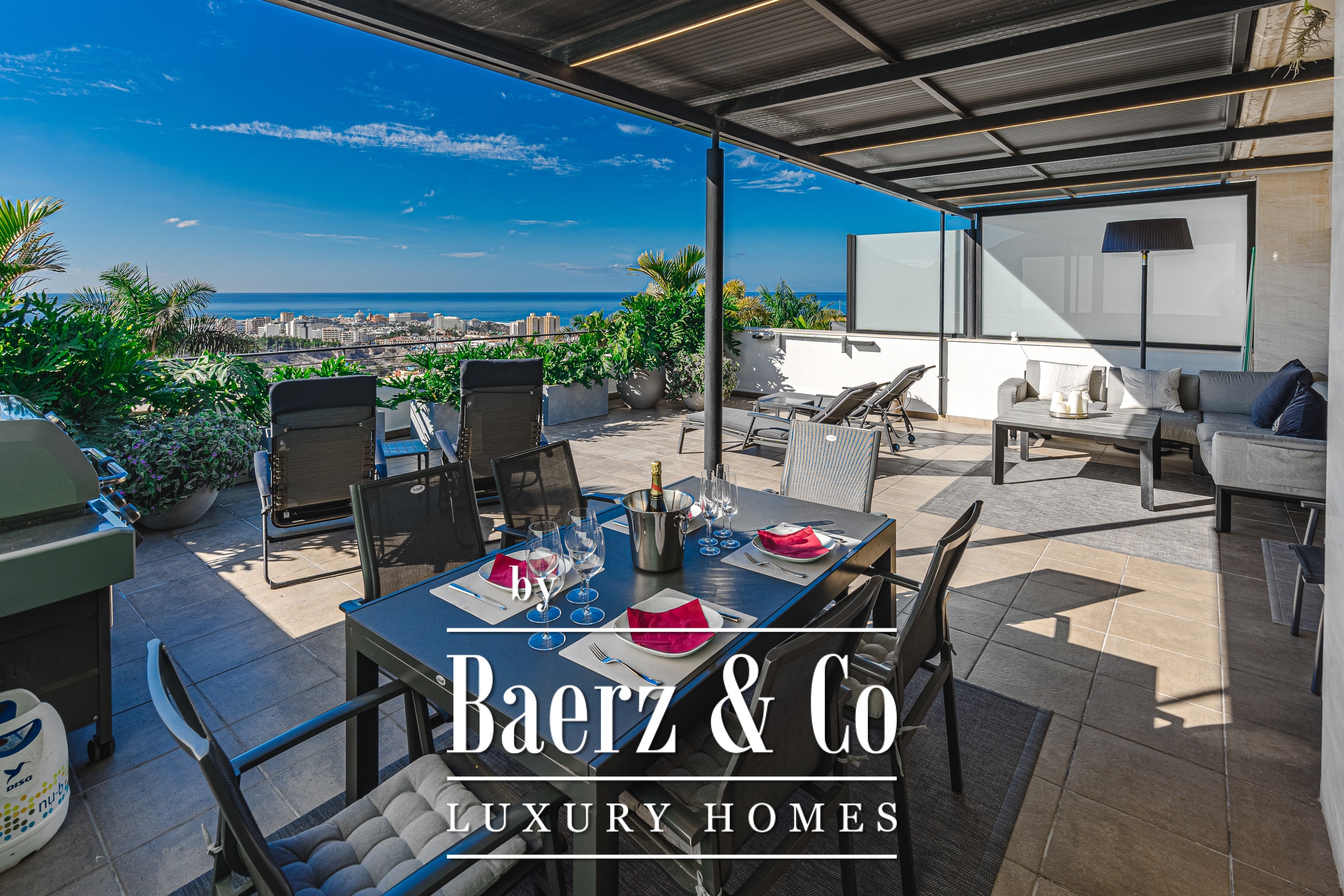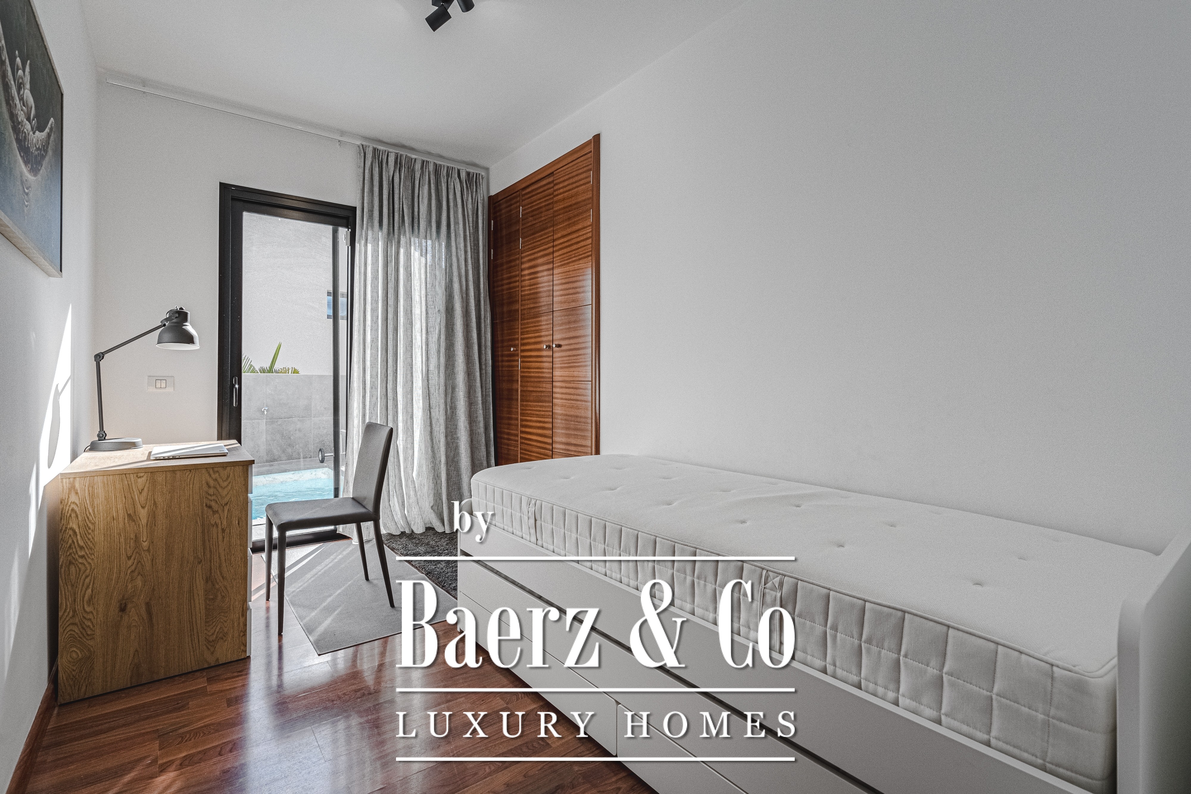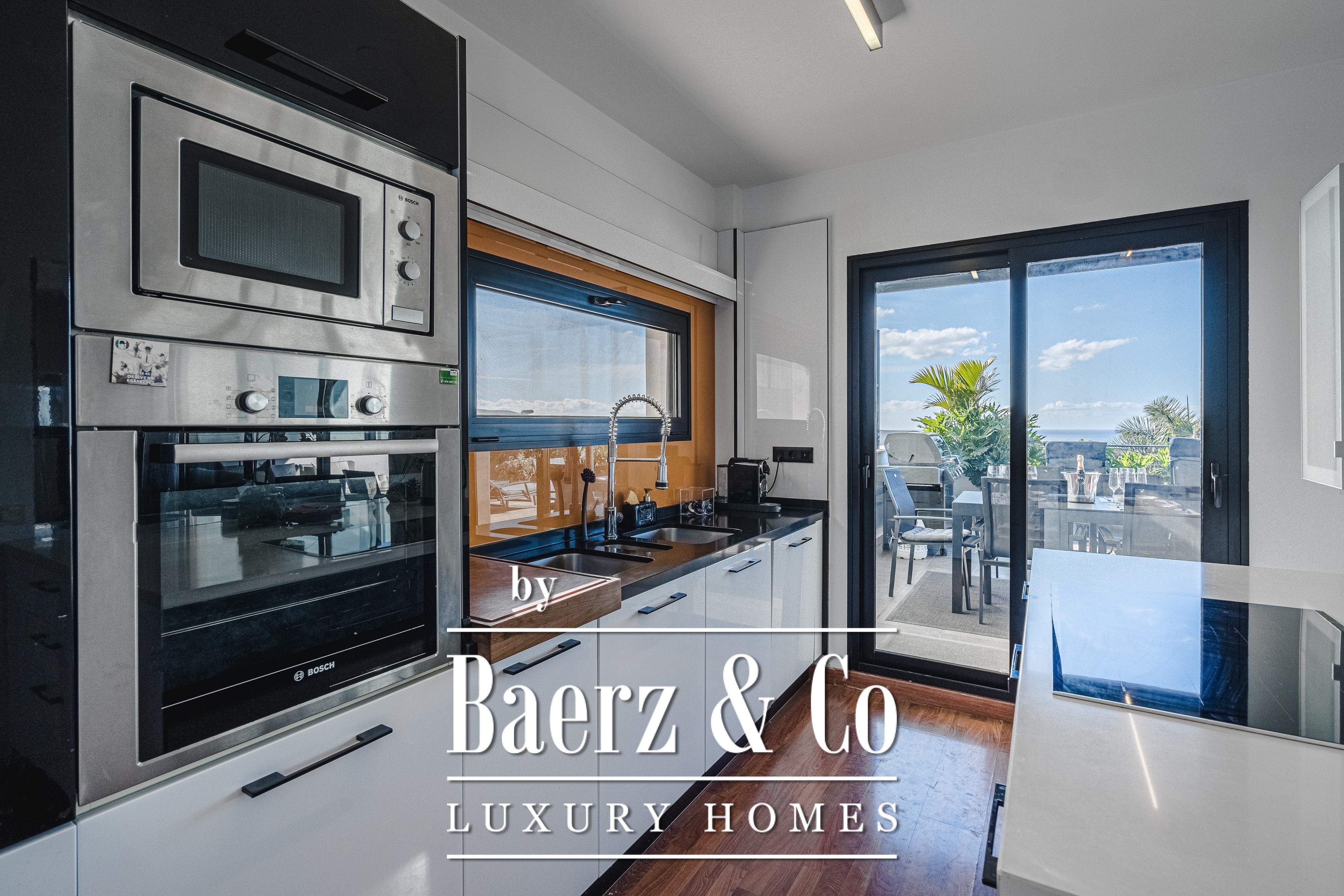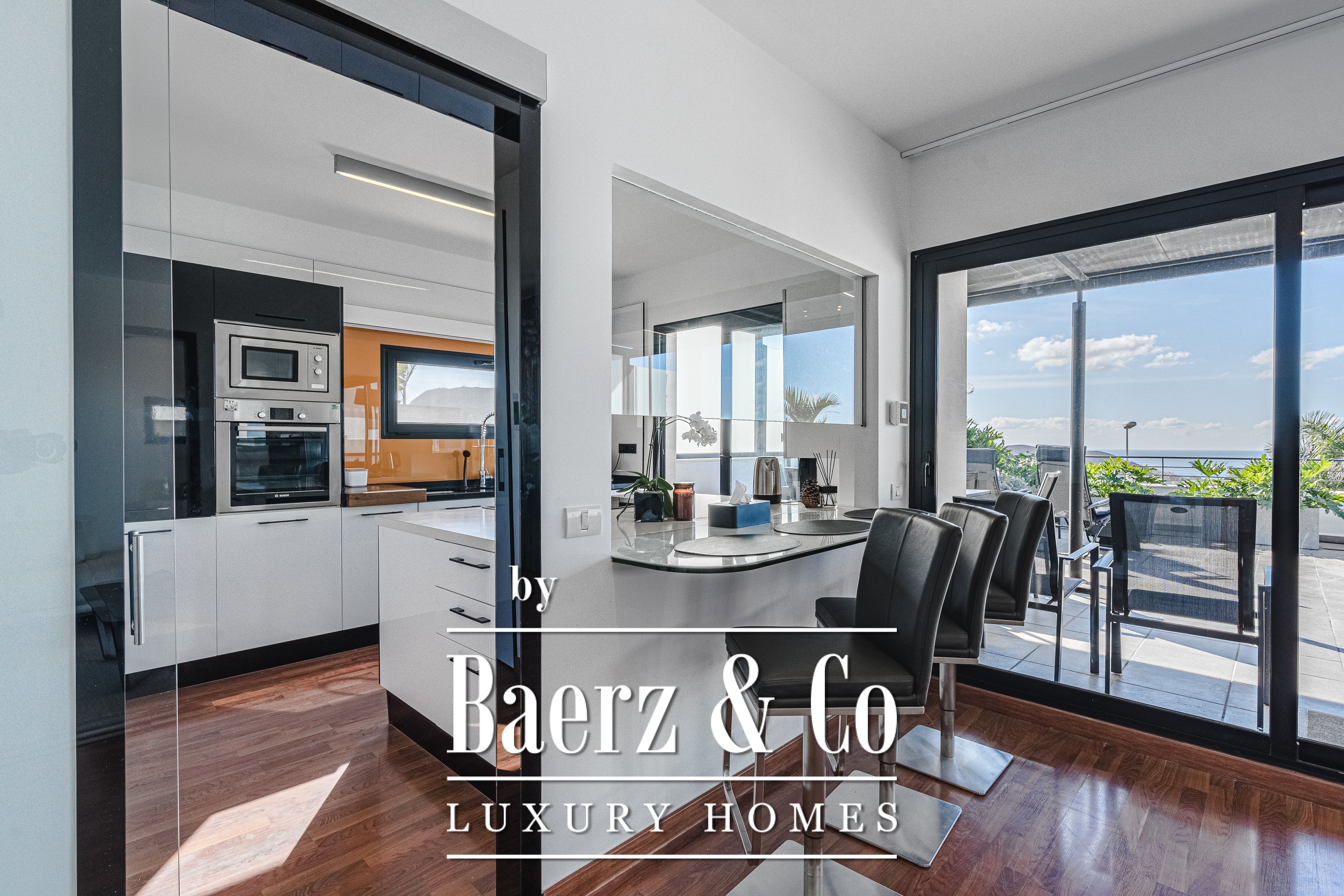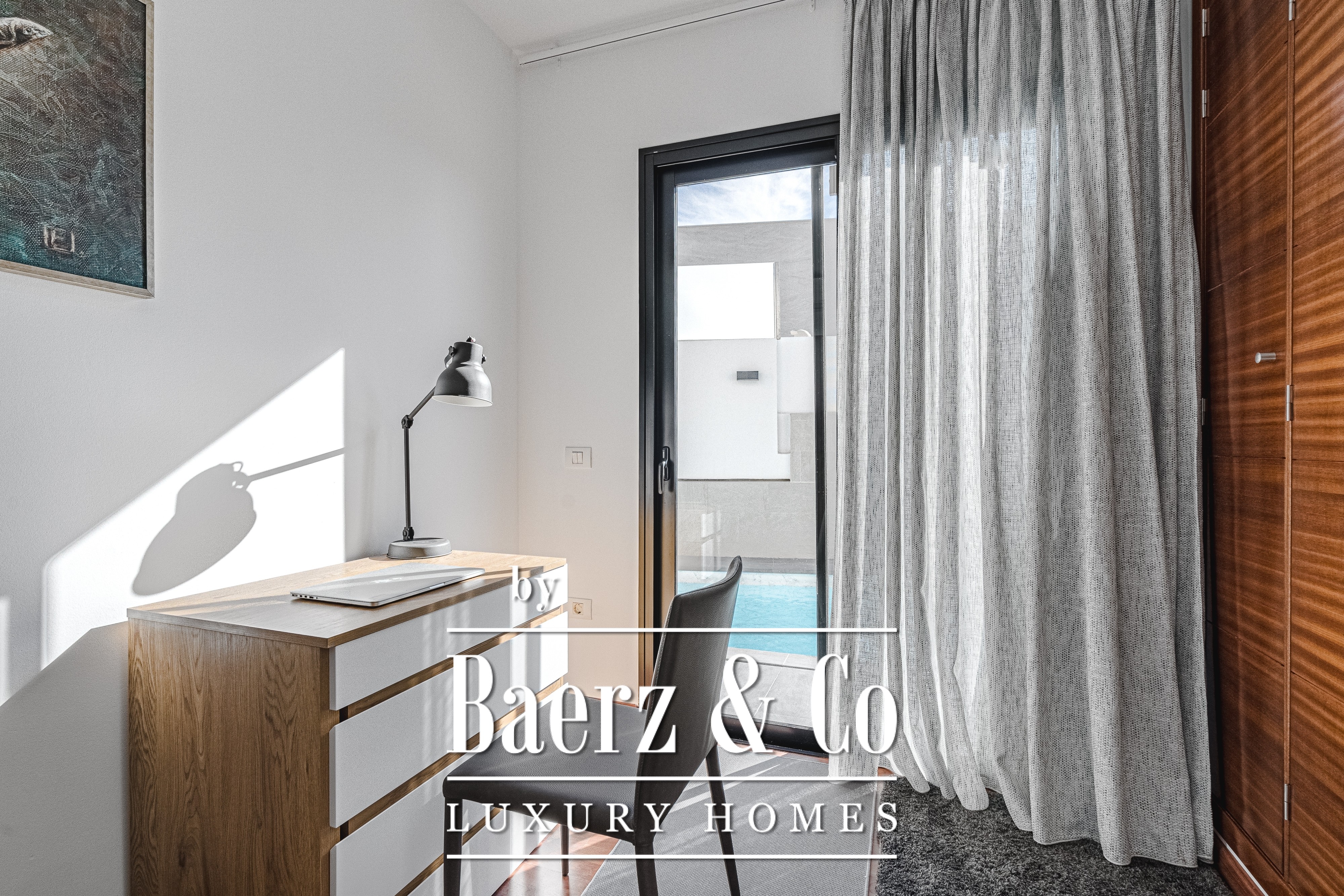 Unique amenities include a private garage with space for up to six vehicles and direct street access, plus a panoramic elevator connecting all floors. This property in Caldera del Rey is a statement of understated luxury, engineered for ease and refined daily living.