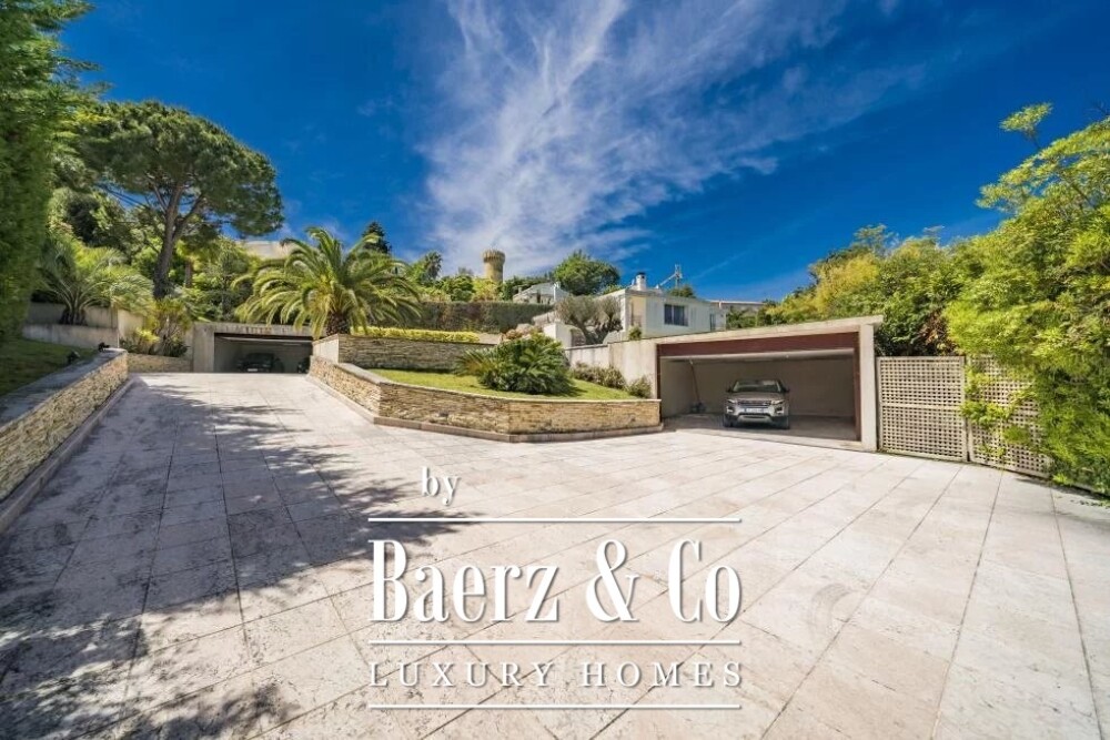 Outdoors, a well-maintained garden, swimming pool, and two garages accommodating up to six cars create an understated residential retreat. There is a possibility to extend the living area by approximately 200 m², subject to planning permissions, allowing scope for future expansion in this coveted address. Villa Super Cannes with sea views offers a considered lifestyle just moments from the heart of Cannes.