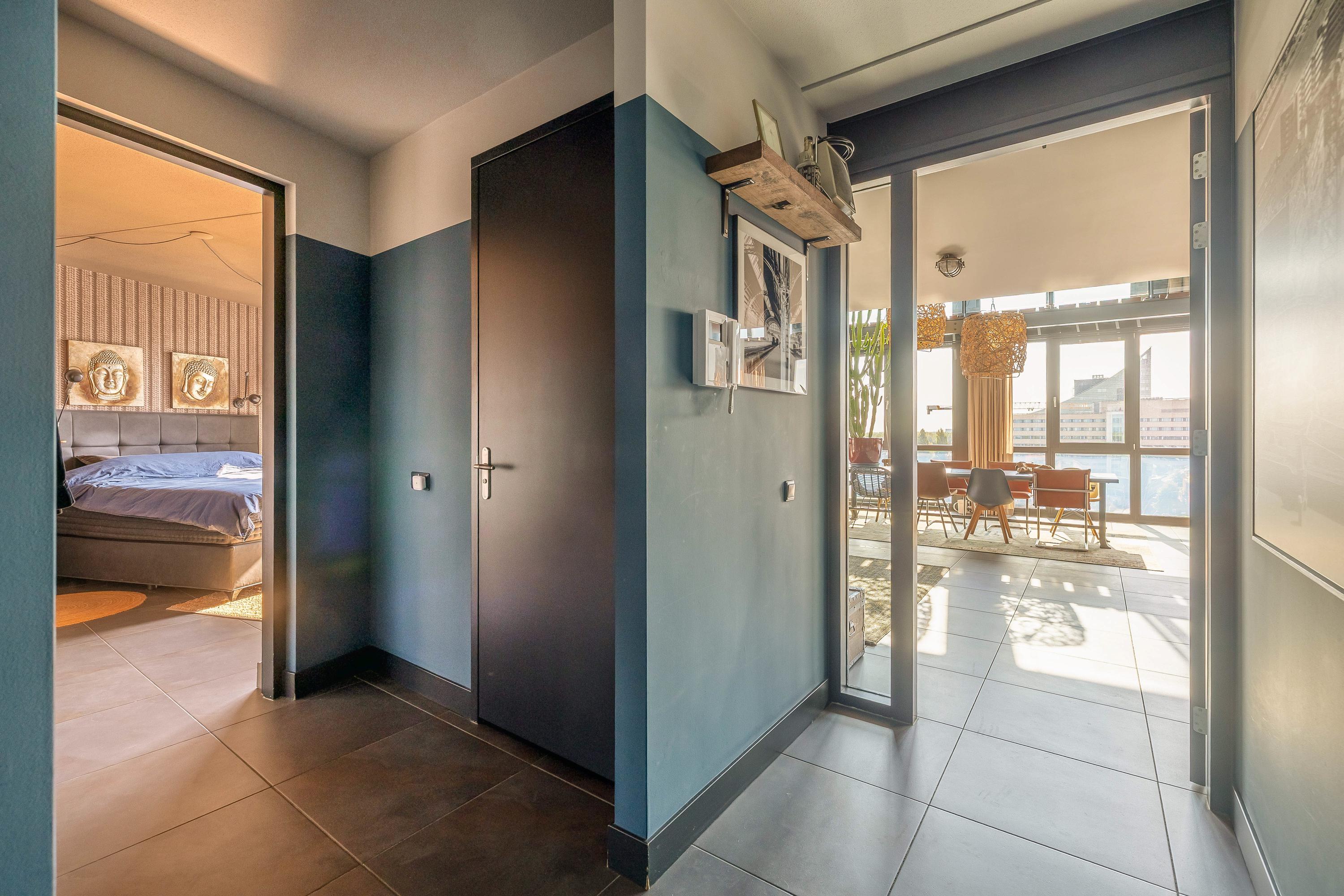 Living at a higher level takes on a whole new meaning here. This double penthouse on the 8th and 9th floors offers a whopping 251 m² of living space, making it a rare and exceptionally spacious city apartment. Everything about this home exudes comfort, luxury, and privacy. With no direct neighbours, you’ll enjoy peace, quiet, and total freedom. The panoramic windows offer breathtaking views of the Rotterdam skyline, the Brienenoord Bridge, and the lights of De Kuip – a view that never gets old. And it continues seamlessly into the outdoor space: spread across two levels, you have a total of 98 m² of roof terraces, ideally positioned to the southeast and southwest. That means: morning sun and evening sun with stunning sunsets.