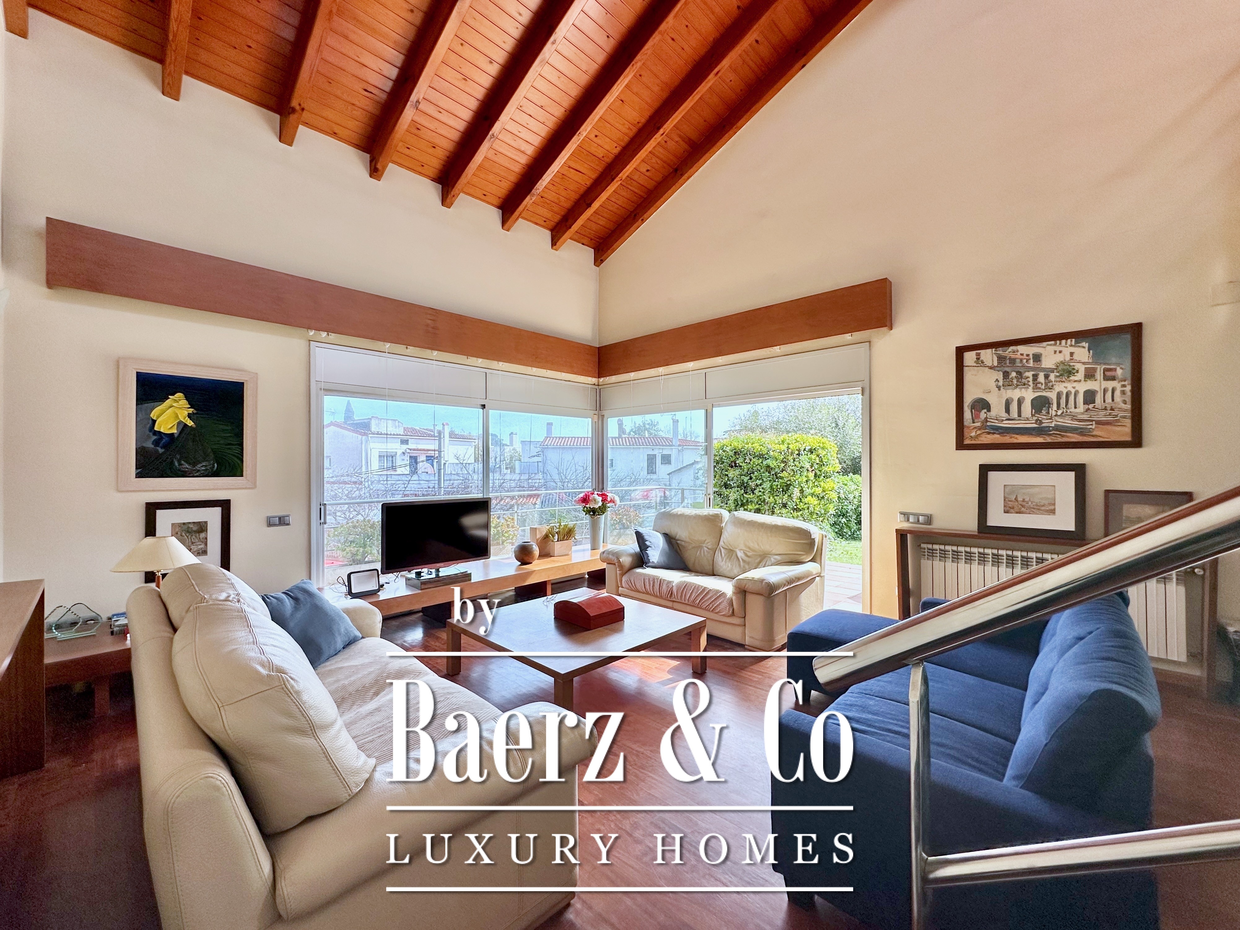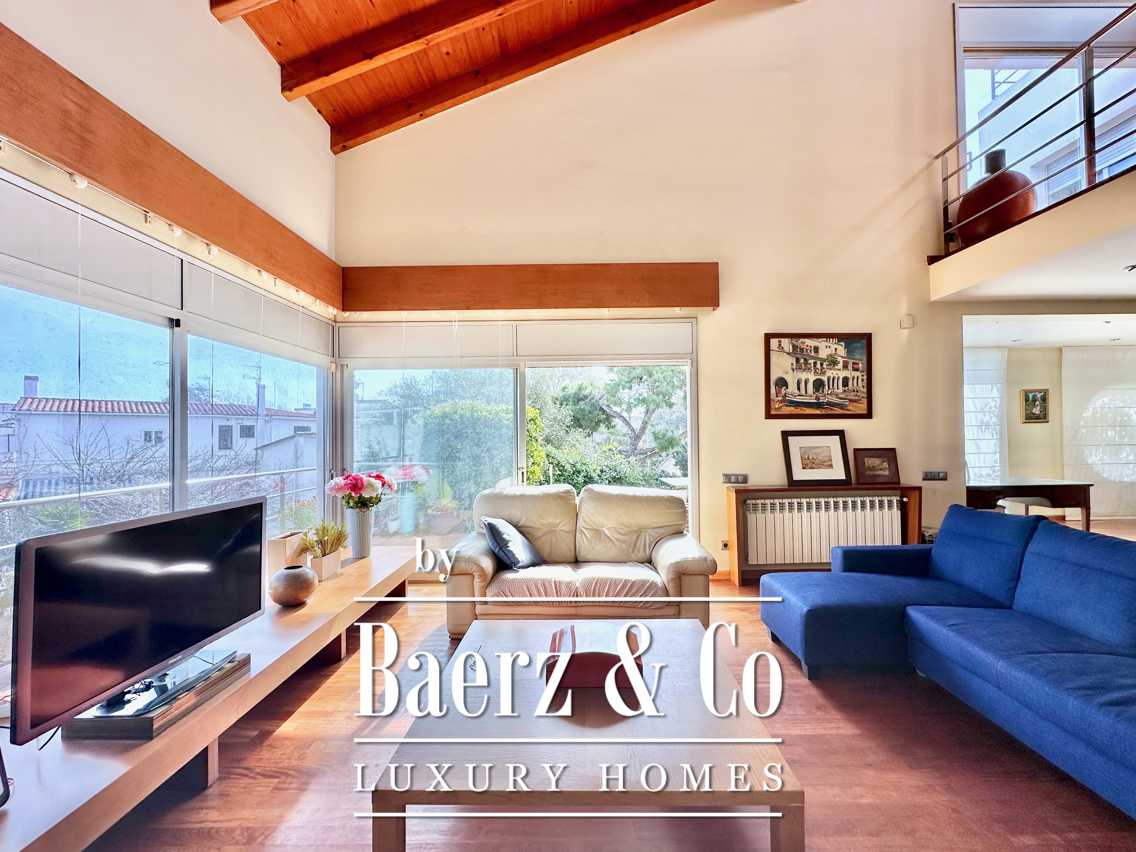 This detached house Castelldefels offers a refined balance of design, light, and privacy. Positioned a short walk from both the town centre and the Mediterranean shore, the property unfolds across a 739 m² corner plot, providing space and seclusion. The residence, built in 2002, encompasses 302 m² distributed over two well-connected levels, each with independent access for versatile living.