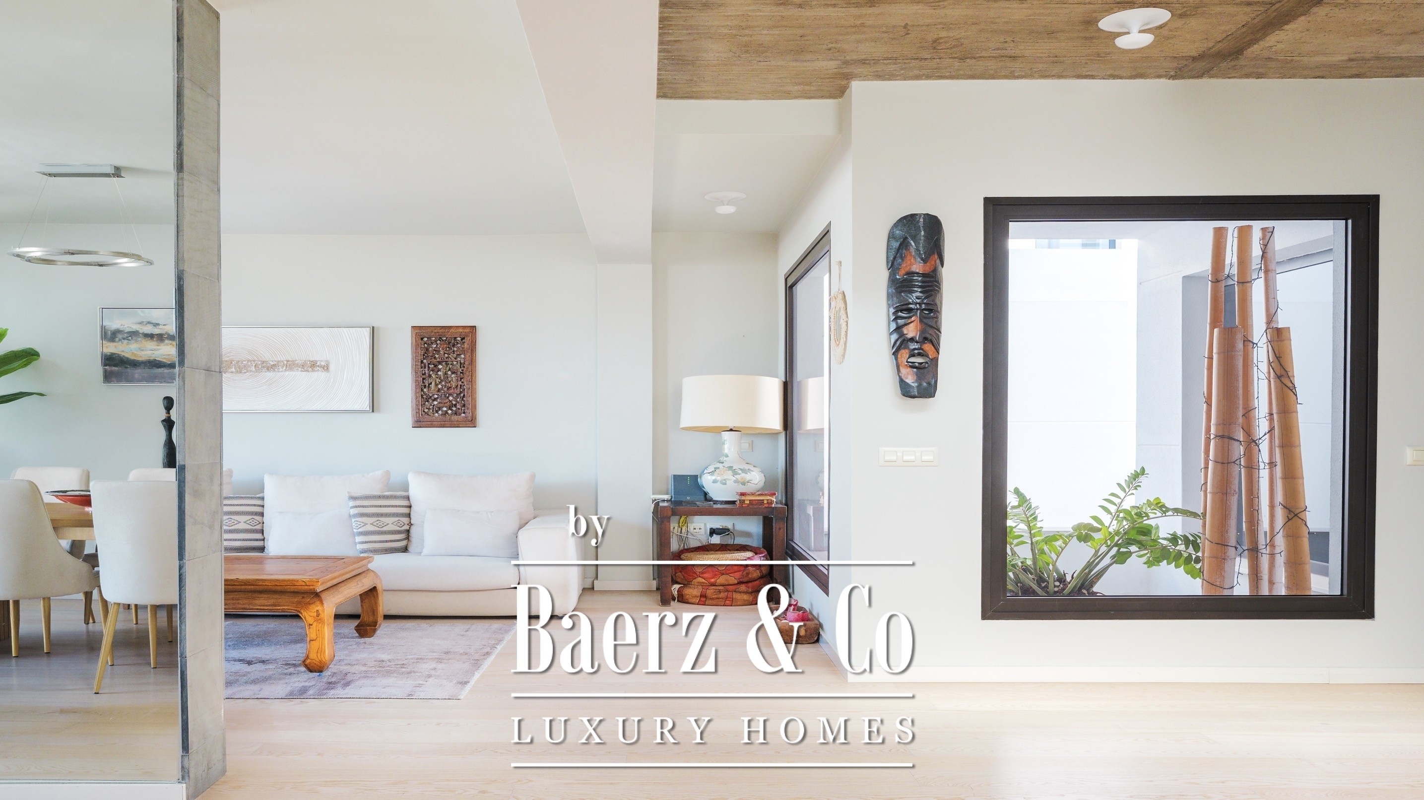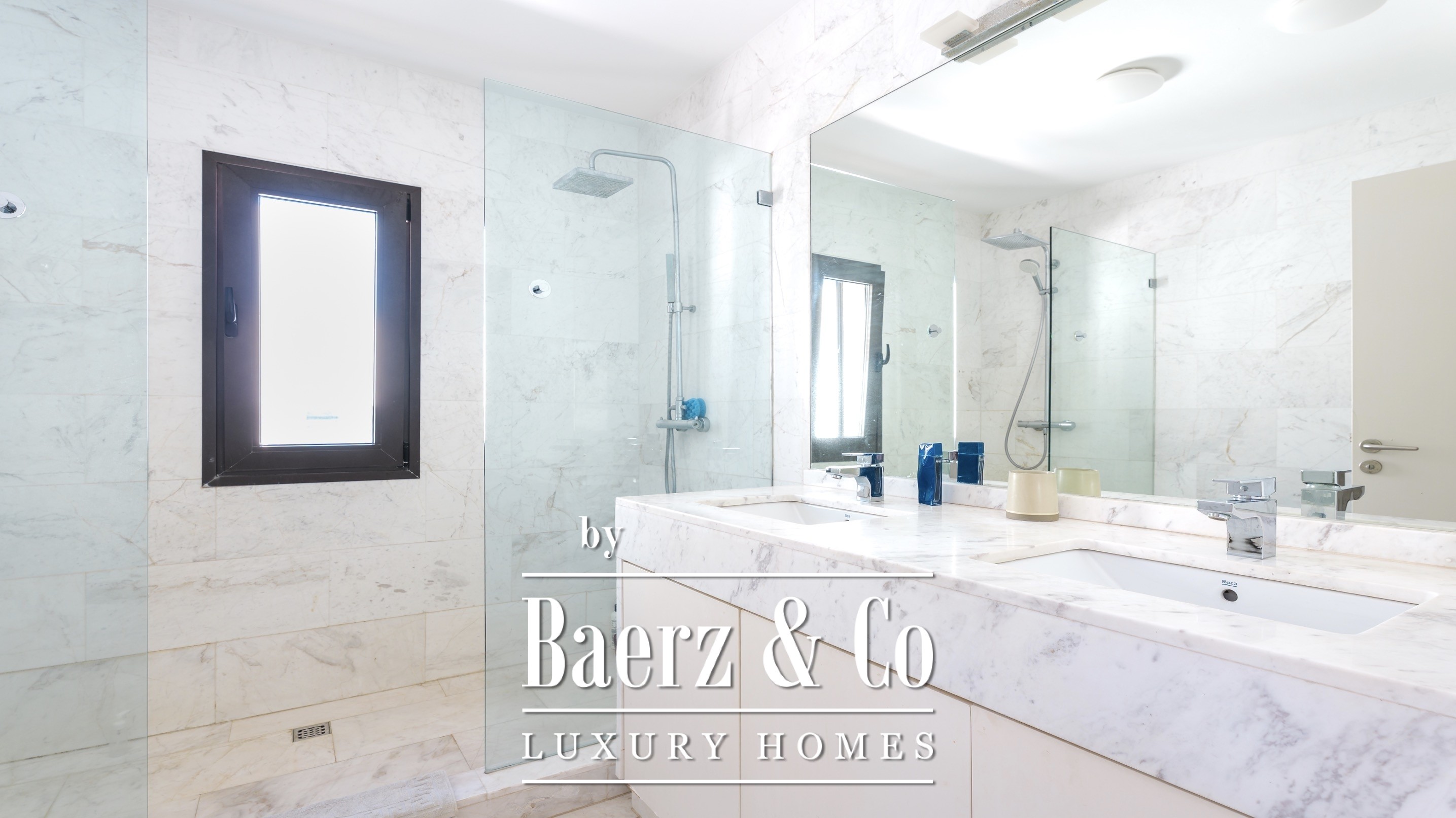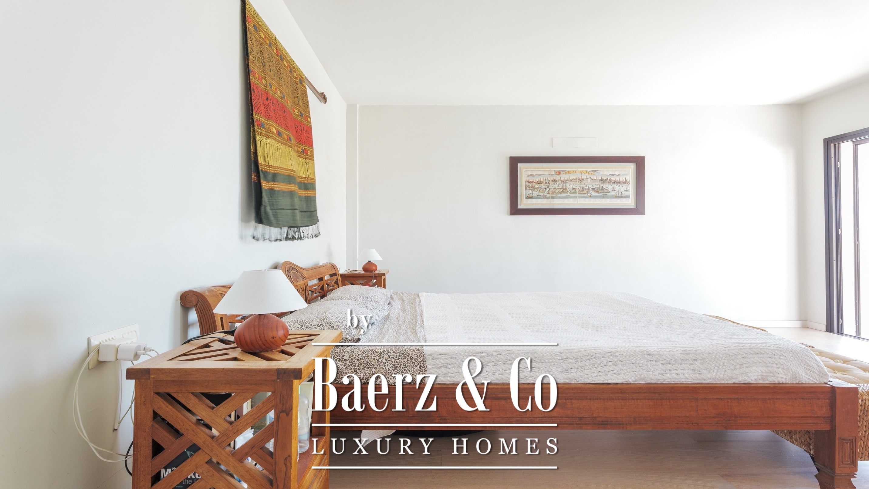 There are four bedrooms with en-suite bathrooms, including the master bedroom with a dressing room, a large bathroom and a private balcony with sea views.