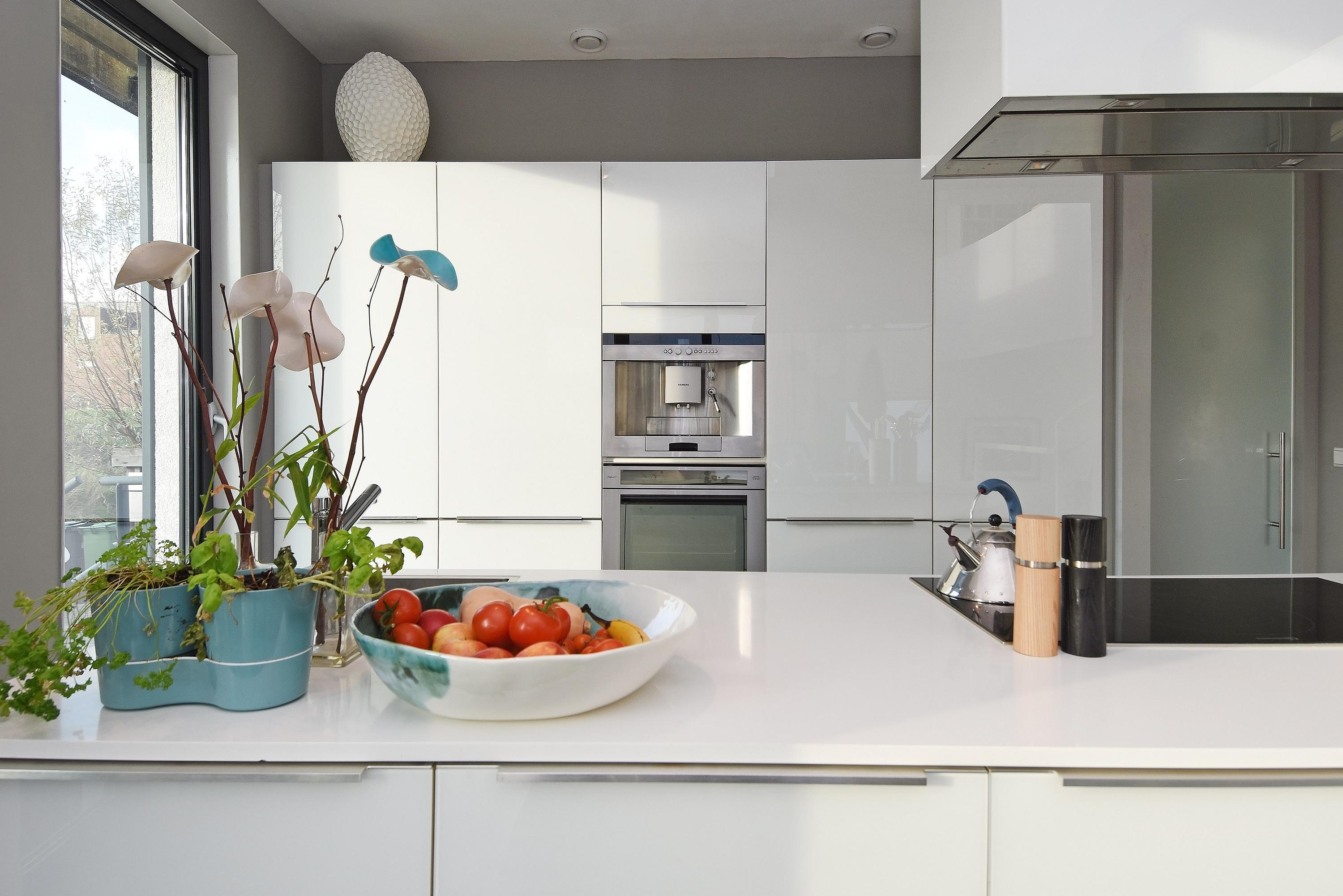 From the kitchen, a staircase leads up to the mezzanine, which can be used for various purposes (e.g. workspace, library, TV room). The biggest surprise is the beautifully landscaped and spacious roof terrace with lots of privacy and atmosphere, where you can enjoy the sun throughout the entire day.