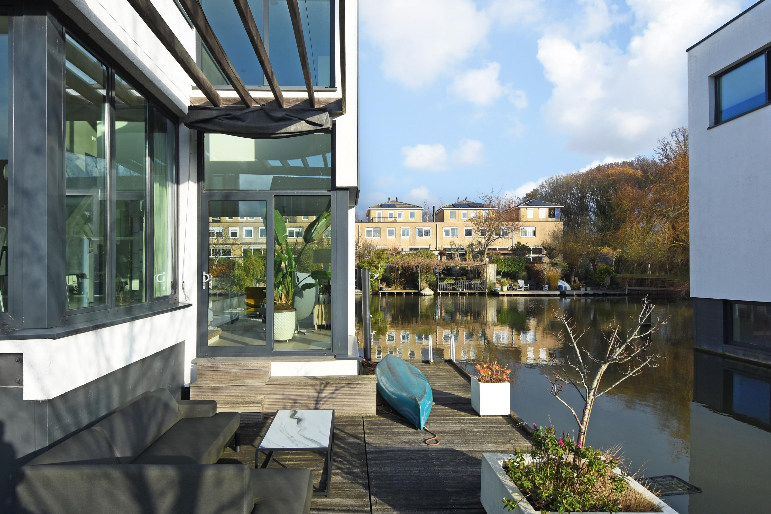 This charming, spacious and energy-efficient floating home is situated in a special location on the water, surrounded by peace and greenery. The property has a luxurious appearance, is well maintained and very practically laid out.