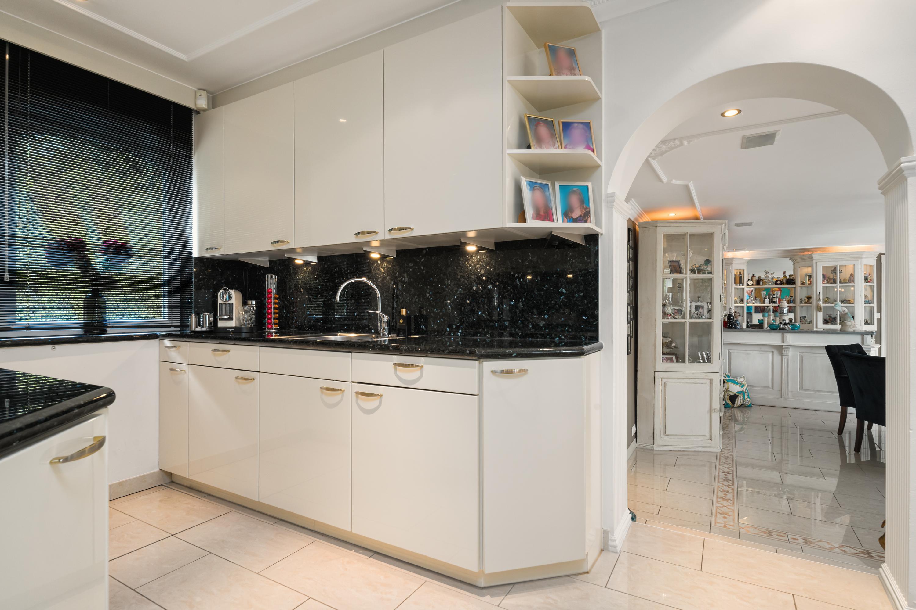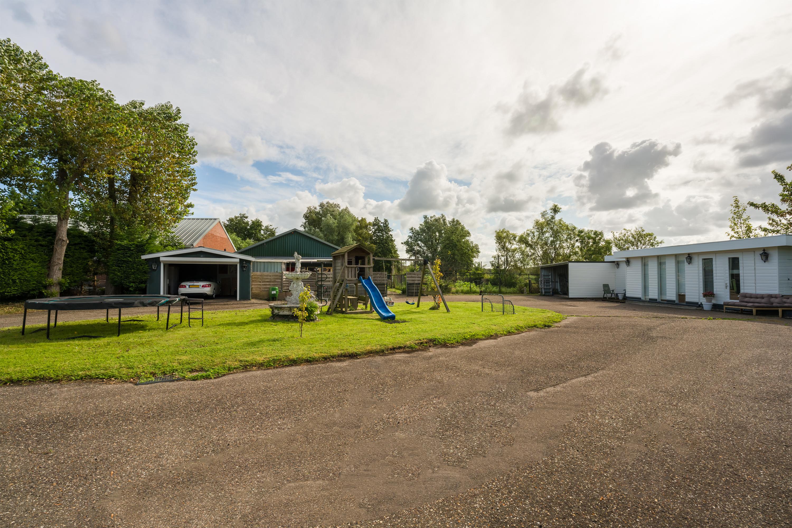 A beautifully enclosed private domain is hidden behind this cleverly positioned detached house with a guesthouse. The entire property exudes a grand vibe as soon as you drive up. Your eyes are drawn to the white iron gates that accentuate the green plot as you approach the gate. Your journey continues along the asphalt driveway, turning around at the back of the property and parking on the roundabout. From here, you can admire the American-style bungalow with its piled terrace, the spacious guesthouse, the commercial space, and the animal enclosures, where flamingos once graced the North Holland landscape.