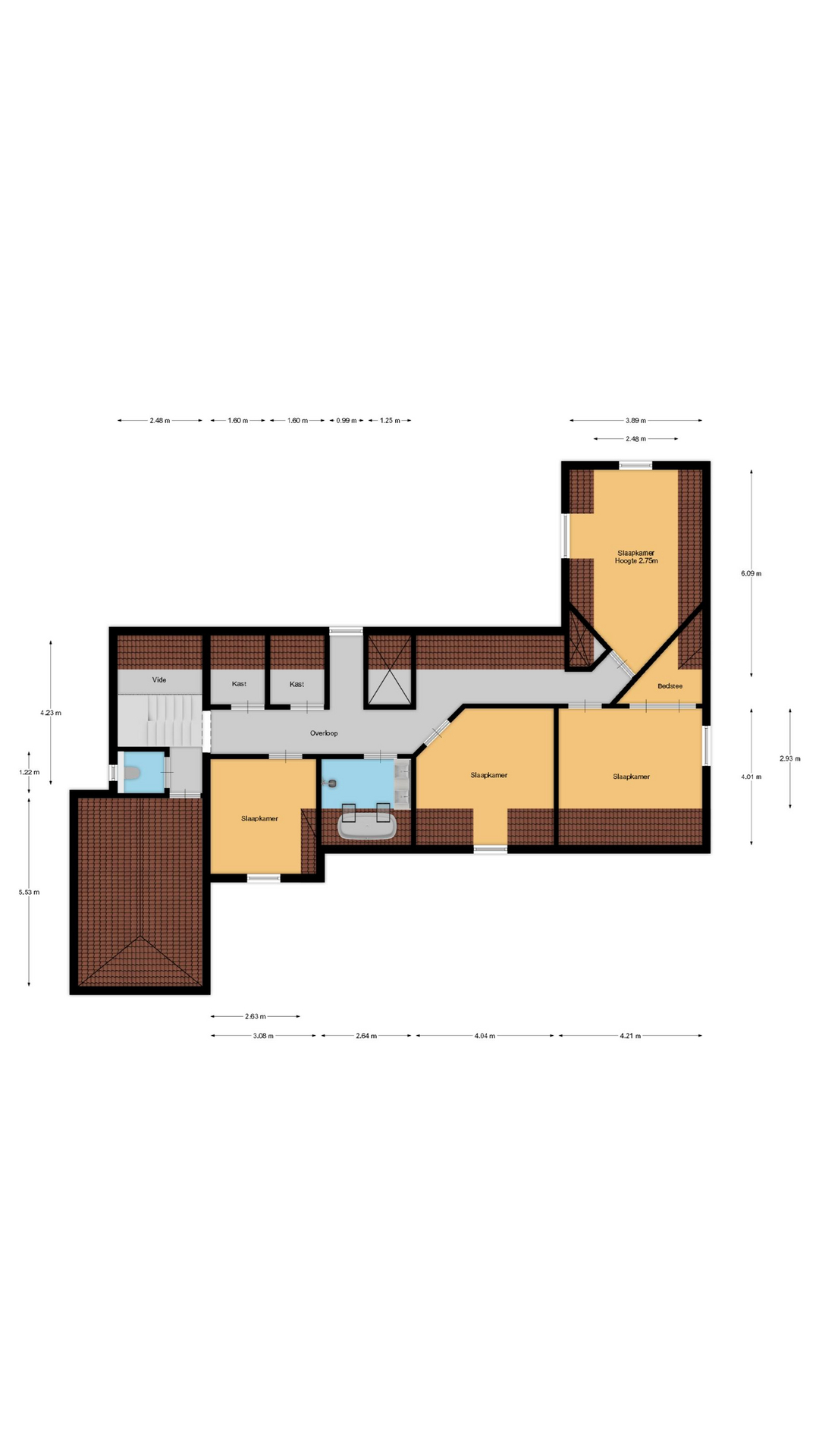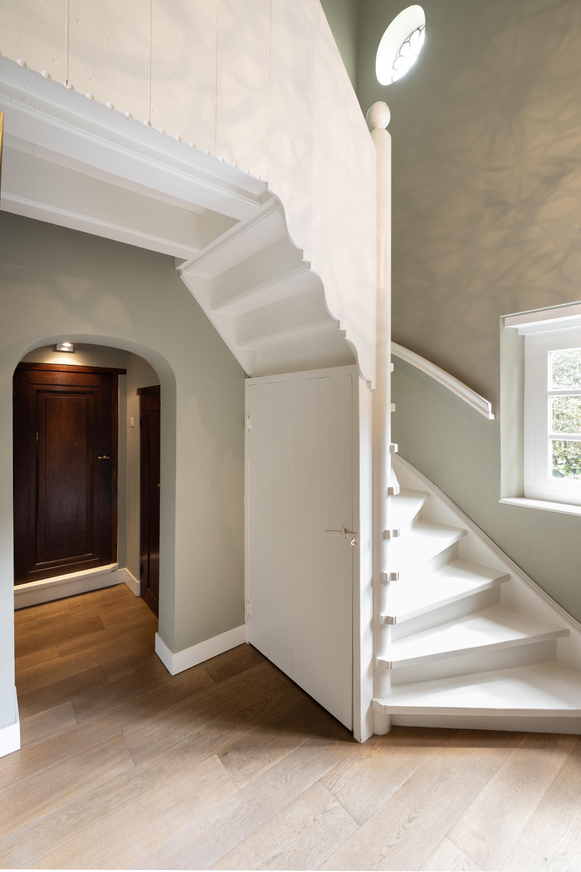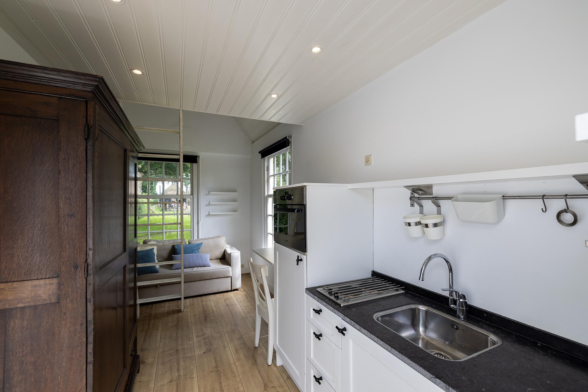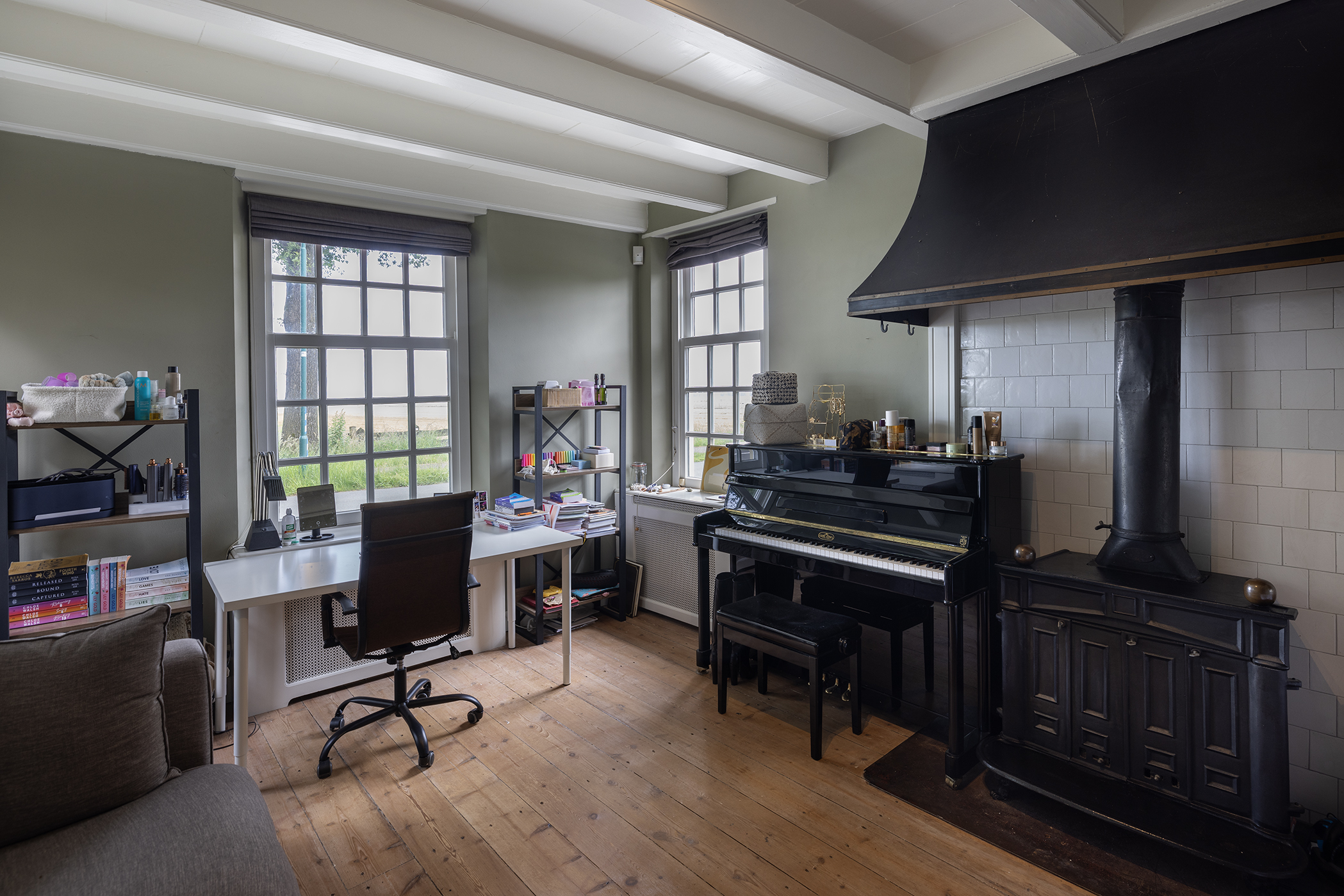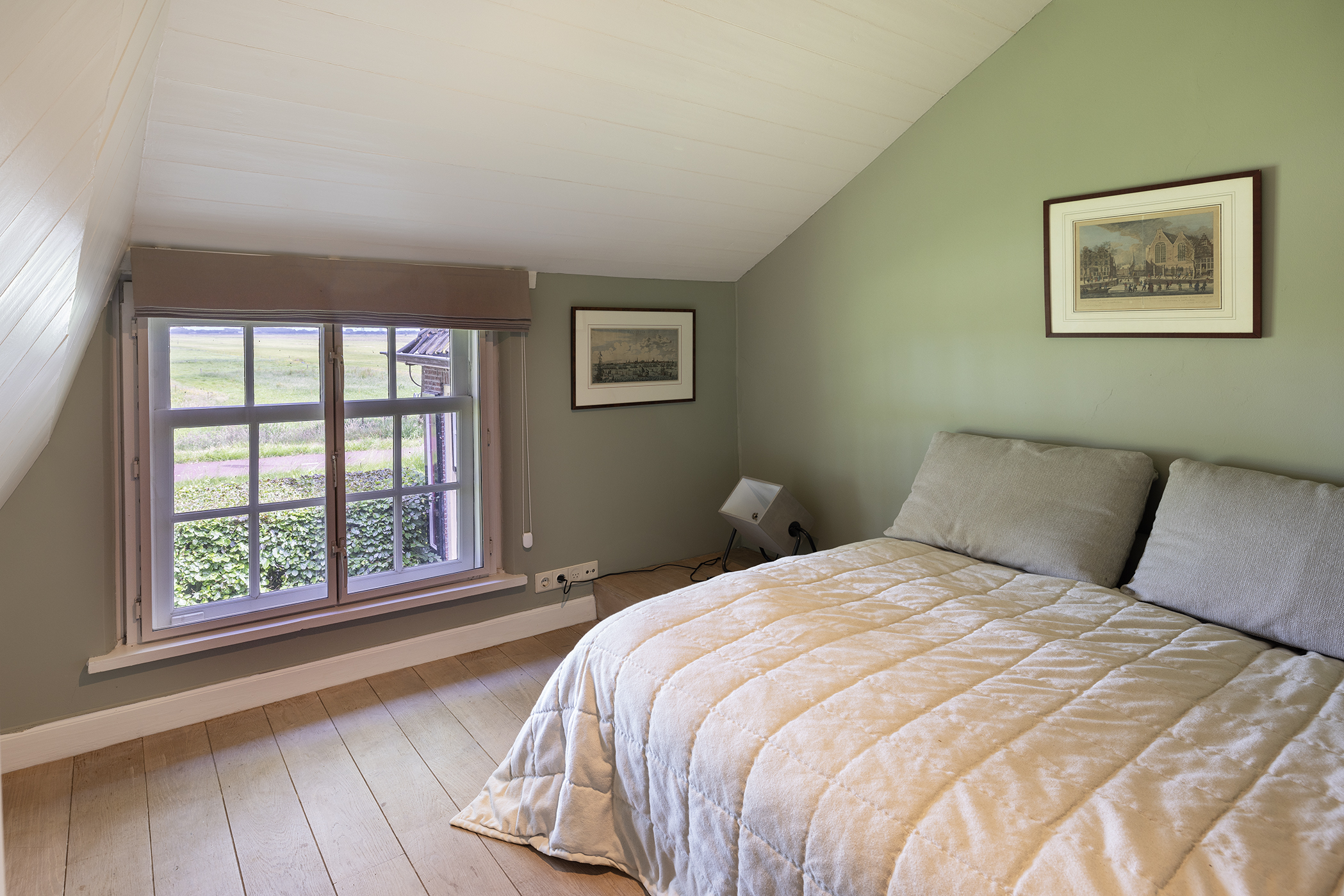 The charming opkamer (raised room) overlooking the meadows makes for a wonderful study, featuring a large fireplace and a private entrance. Beneath this room is one of the two cellars, currently used as a spacious laundry area. Upstairs you’ll find even more space: four bedrooms, a modern bathroom, a separate toilet, and even a traditional box bed — for those who like things extra cozy.