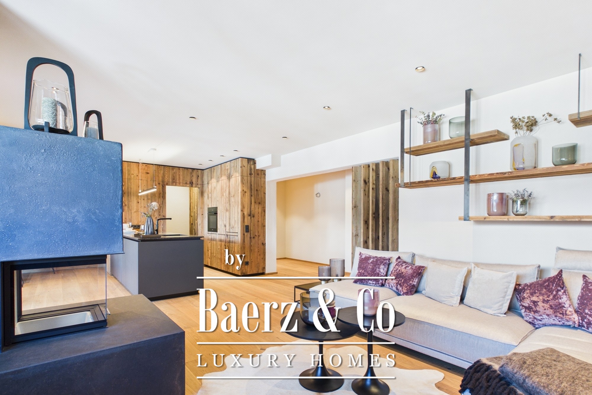 Apartment Ellmau is set in a coveted, quietly elevated position with striking panoramic views of the Wilder Kaiser mountain range and the surrounding landscape. With a living area of 142 m², this residence offers three bedrooms and two bathrooms, delivering an impressive balance of generous space and understated luxury. The heart of the apartment is its light-filled living, dining, and kitchen area, opening onto sun-drenched terraces that invite relaxation and contemplation, while a fireplace adds a sense of warmth and comfort.