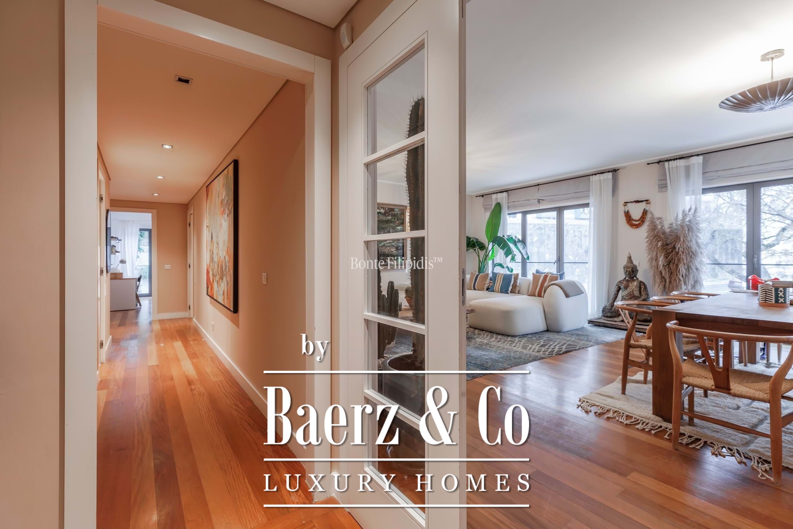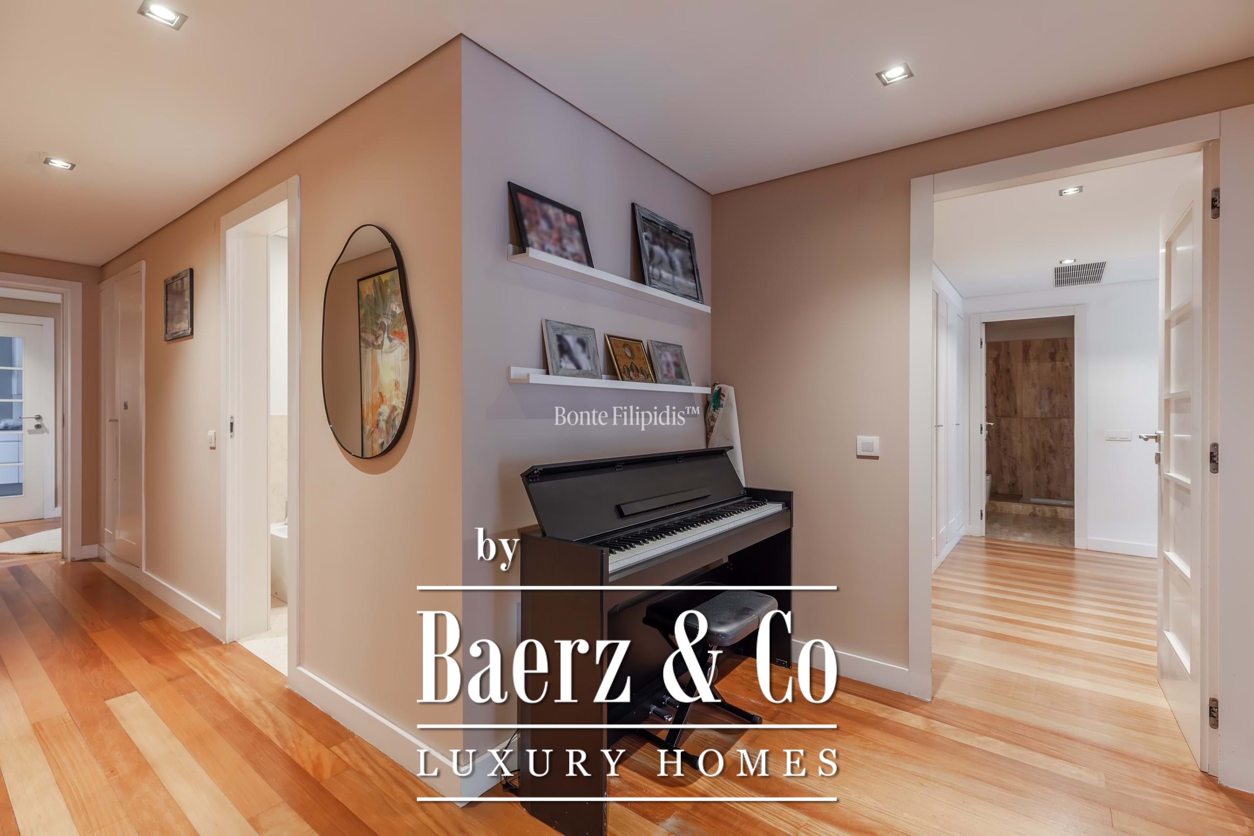 Apartment Estrela Lisbon is set within a discreet and contemporary residential condominium, offering a carefully balanced environment where comfort and design coexist. With a living area of 206 m² and a total of 4 bedrooms and 4 bathrooms, the apartment responds to the needs of those who value privacy, functionality, and understated sophistication.