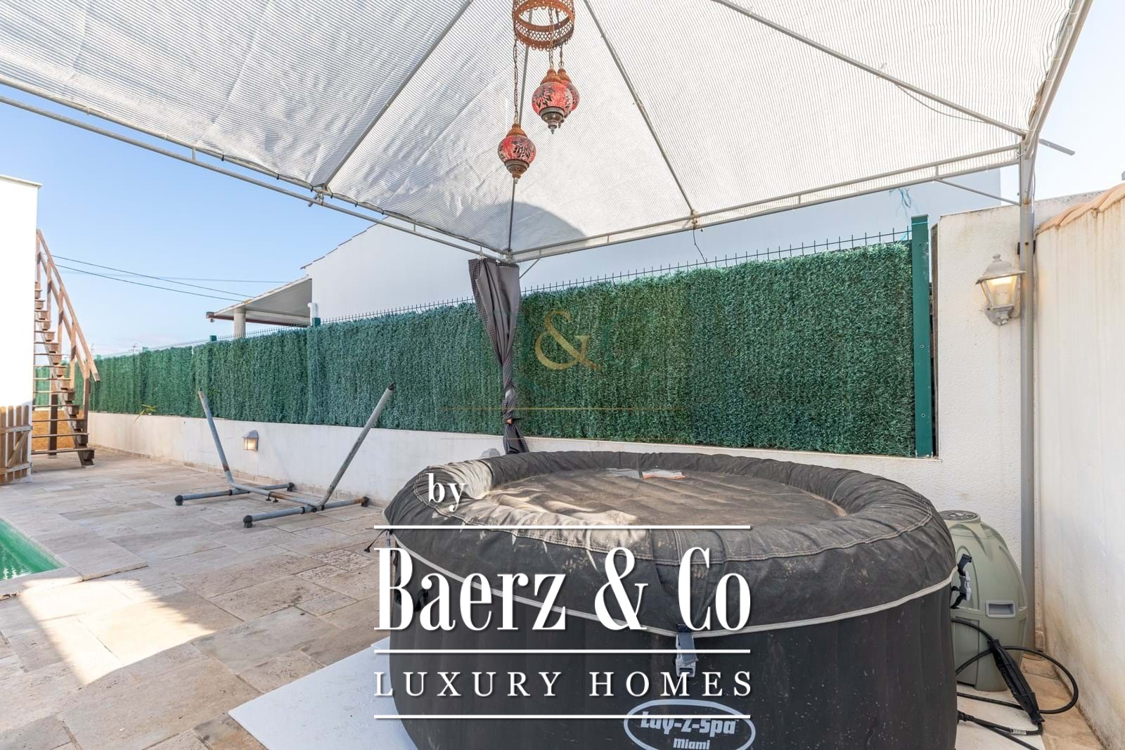 Stairs lead to the expansive roof terrace with wide countryside and city views, where the solar and air conditioning units are thoughtfully positioned. Furniture, including the hot tub, is included. This villa’s setting on the edge of Faro offers a poised retreat for year-round living or effortless lock-up-and-leave convenience.