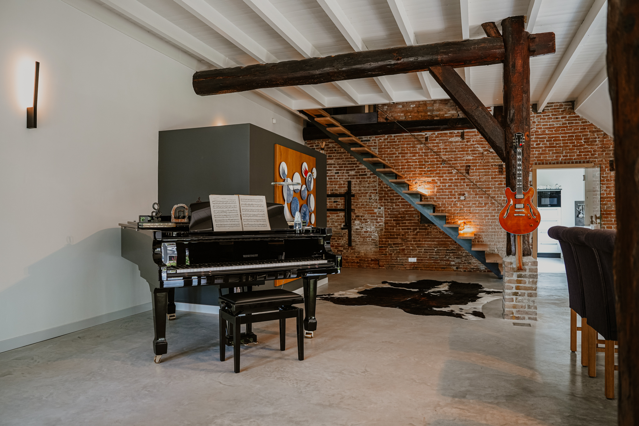 Impressive, garden-oriented living room, a luxuriously fitted kitchen with fireplace and wood-burning stove, a cosy sitting room, a study above the wine cellar and a spacious bedroom with wardrobe and comfortable bathroom on the ground floor.