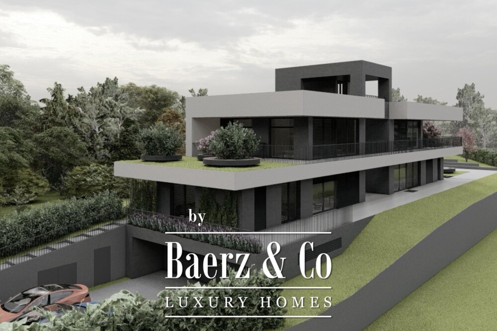 The villa’s layout unfolds across three spacious floors connected by an elevator. The lower ground floor provides a generous garage for three cars, dedicated storage rooms, a boiler room, and an indoor pool area envisioned for wellness, with space allocated for a sauna and bathroom. Opening onto a substantial terrace, this level merges seamlessly with the garden, extending the interior experience outdoors.