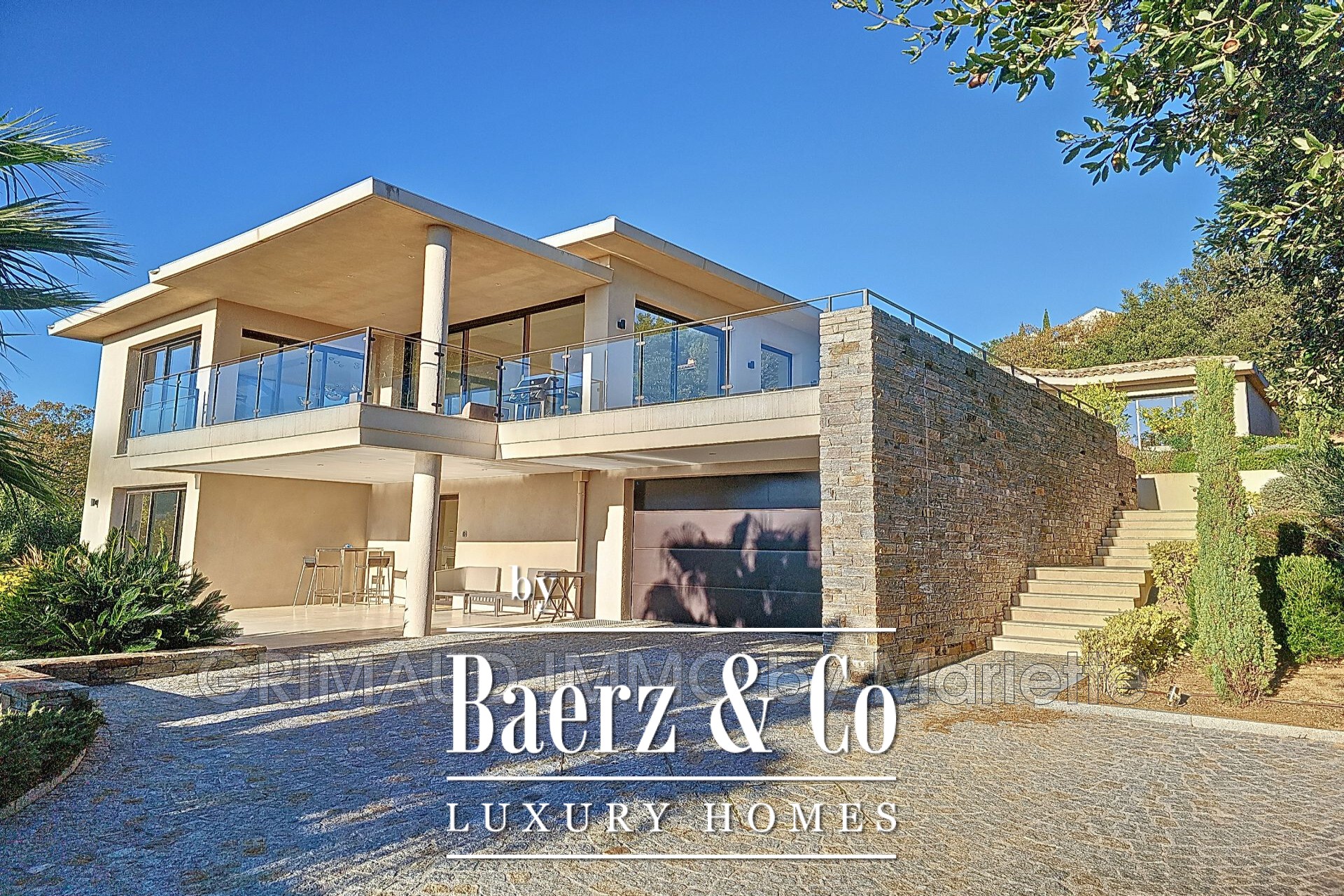 Villa Grimaud for sale embodies the fusion of comfort and elegant restraint in one of the region’s most sought-after neighborhoods. This villa presents 306m² of living space gracefully arranged over two light-filled levels, providing five tranquil bedrooms and two well-appointed bathrooms. From the 90m² living room, the scene unfolds onto a landscaped garden where a heated swimming pool and sea view create a subtle atmosphere of coastal privilege.