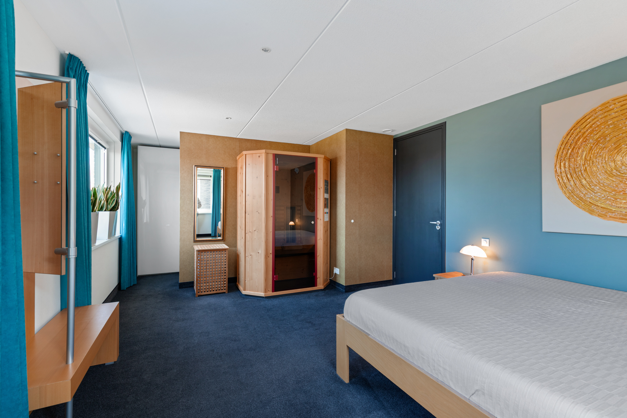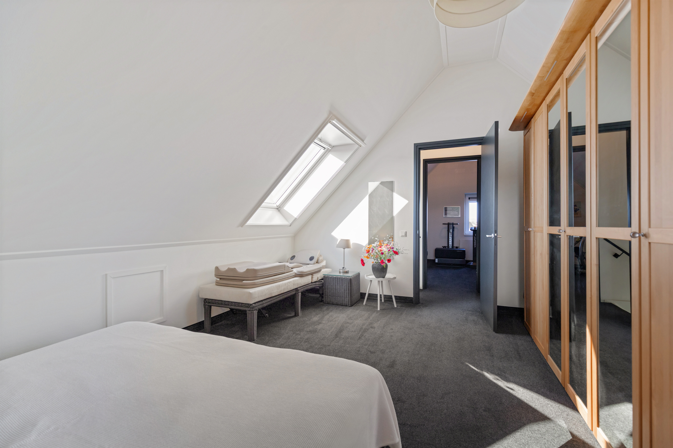 Via a fixed staircase, you reach the second floor, with two bedrooms and a large walk-in storage room (possible additional bathroom). Both rooms have high vaulted ceilings, creating a playful and spacious atmosphere. One room also features its own walk-in closet.