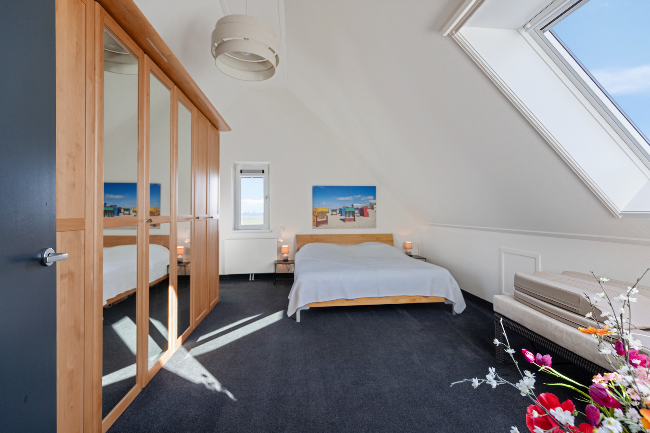 Second bedroom: South-west corner with panoramic views over the meadows and water.